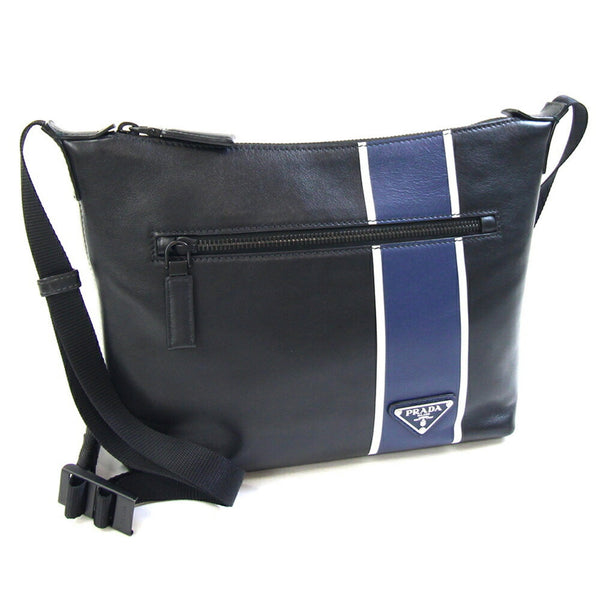 Prada Shoulder Bag 2VH078 Black Leather Crossbody Men\'s Striped PRADA