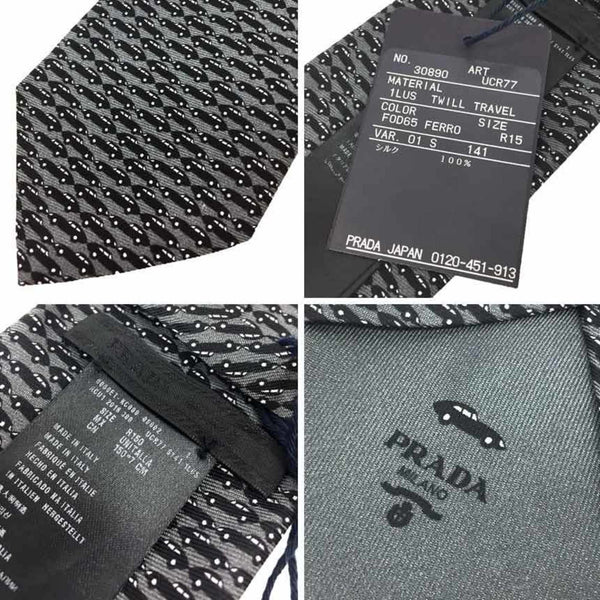PRADA tie, car pattern, 30890, UCR77, gray x black,