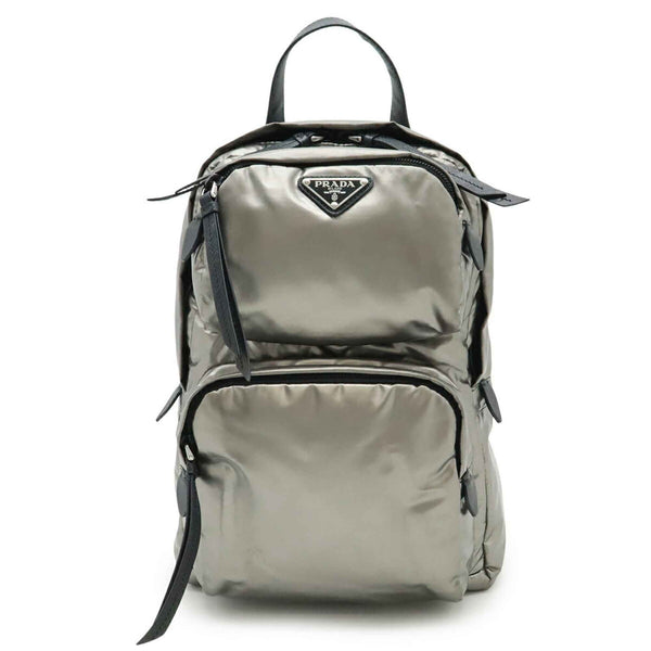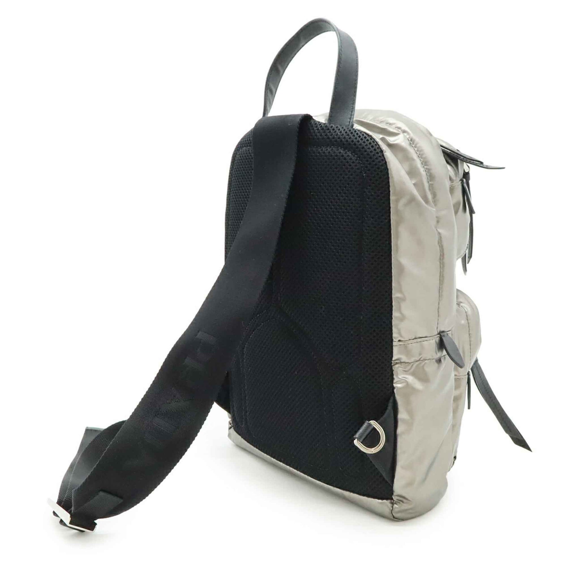 PRADA Triangle Bag, Body Shoulder Nylon and Leather, FERRO Metallic Silver, NERO Black, 1BZ026