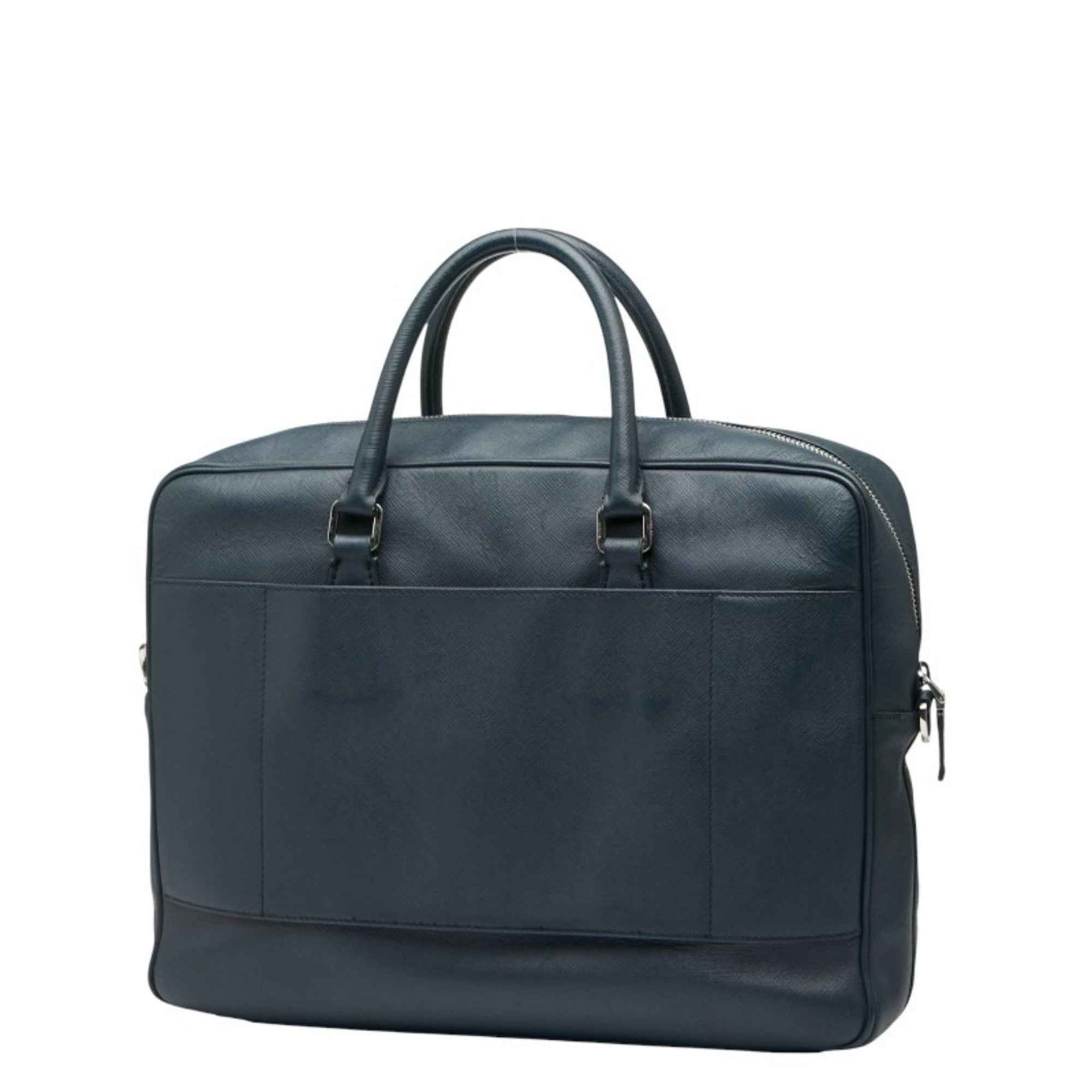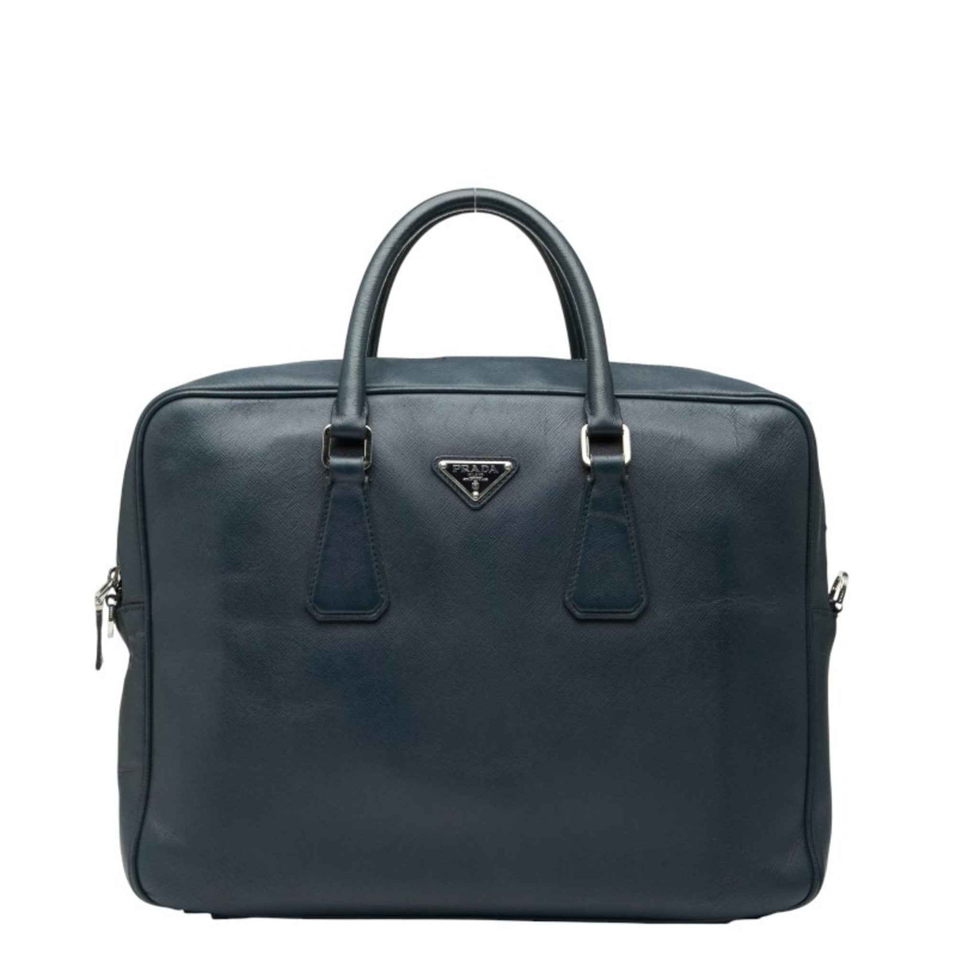 Prada Triangle Logo Plate Handbag Navy Saffiano Leather Women\'s PRADA