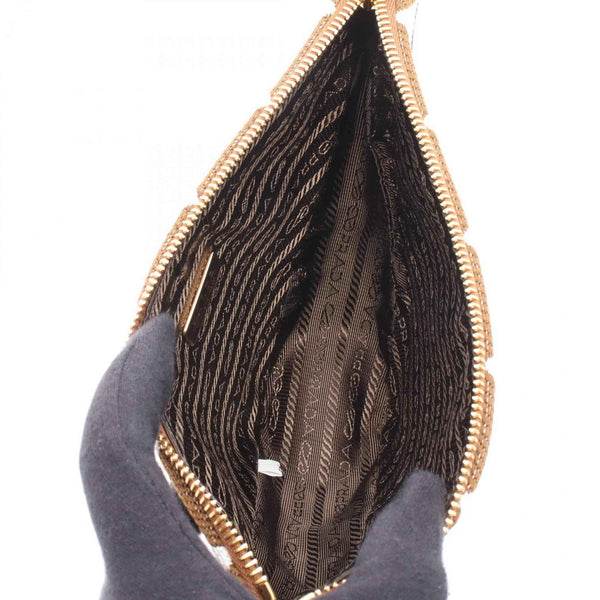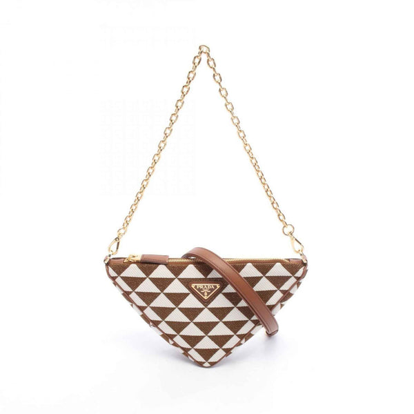 Prada Triangle Shoulder Bag, Canvas and Leather, Women\'s, Brown/White, 1BC543