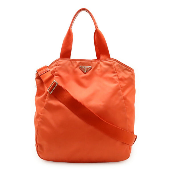 PRADA Triangle Tote Bag Shoulder Nylon Leather Corallo Orange BR3851