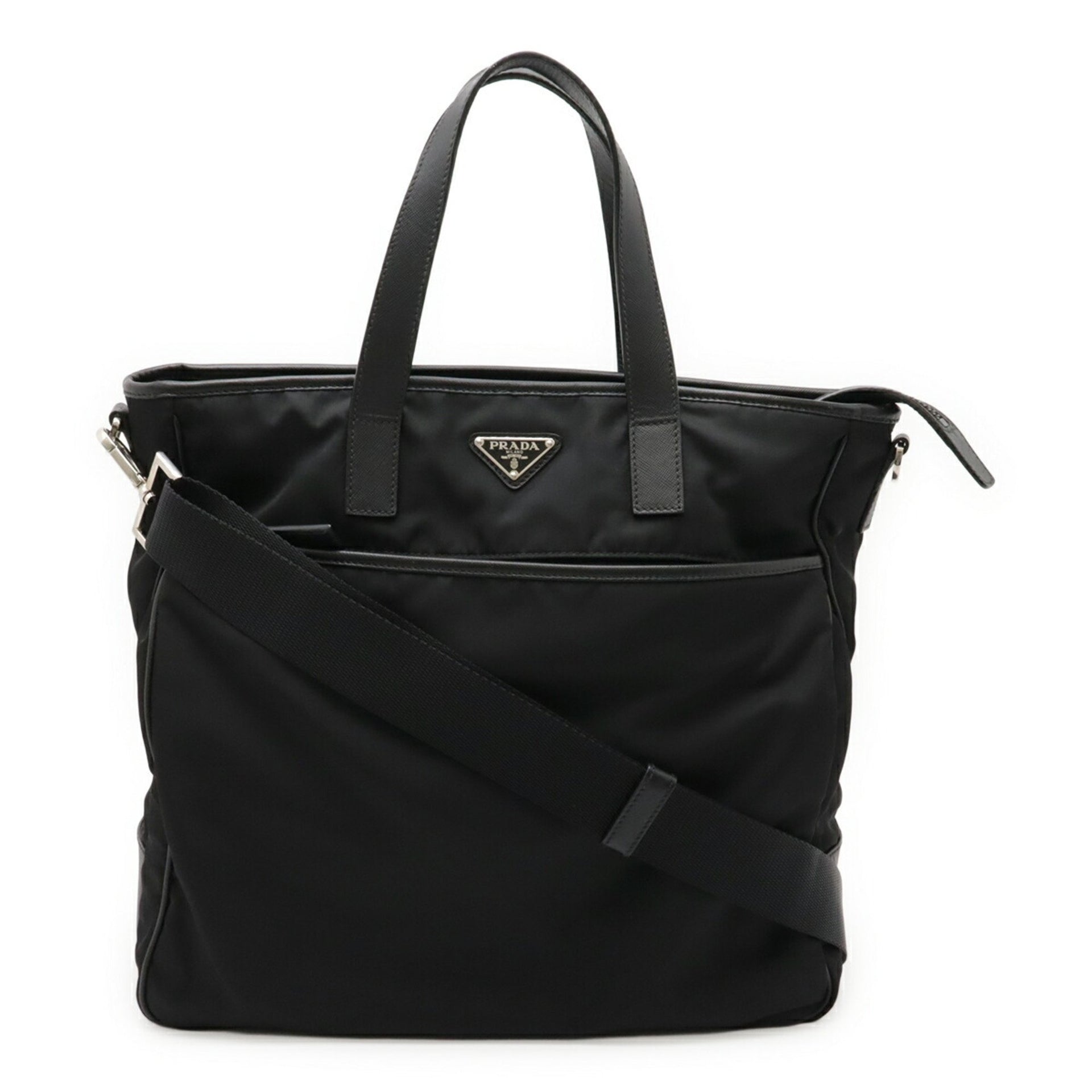 PRADA Triangle Tote Bag Shoulder Nylon Leather NERO Black 2VG032