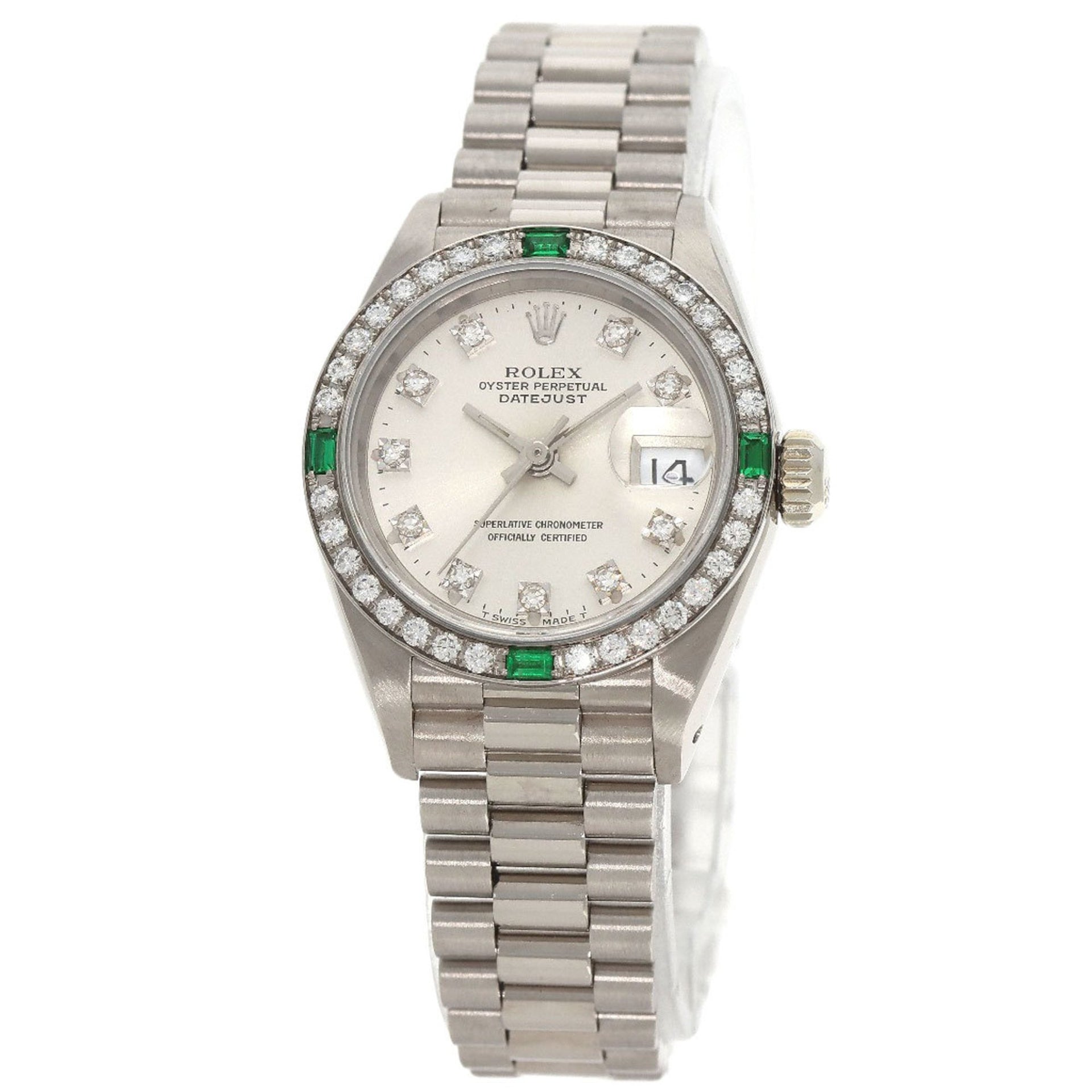 Rolex 69079G Datejust Diamond and Emerald Watch in 18K White Gold/18KWG with Diamonds, Women\'s