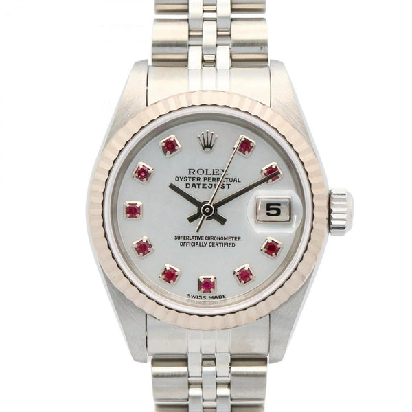 Rolex Datejust 10-Piece Ruby Y Series Watch, 18K White Gold (White Gold) Stainless Steel, Ruby, Women\'s, Silver, 79174NGR