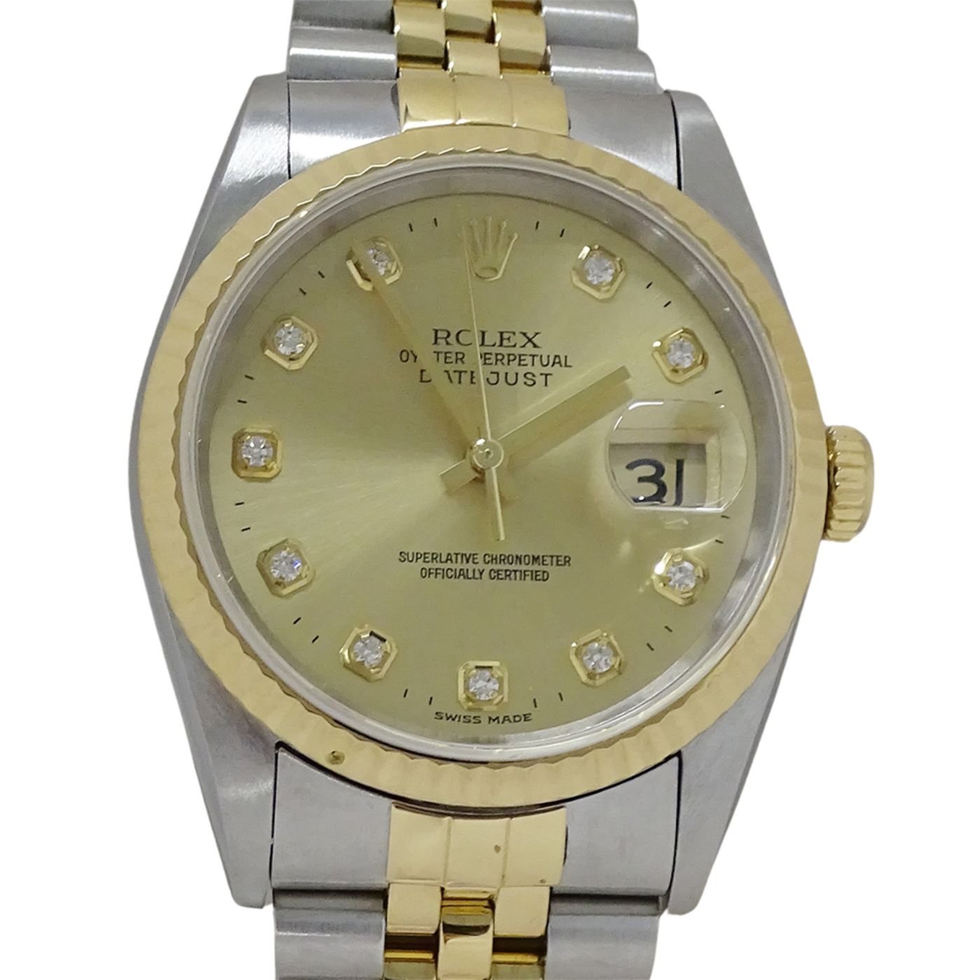Rolex Datejust 16233G W-number Men\'s Watch, 10 Diamonds, Automatic, Stainless Steel, Gold, Yellow Polished