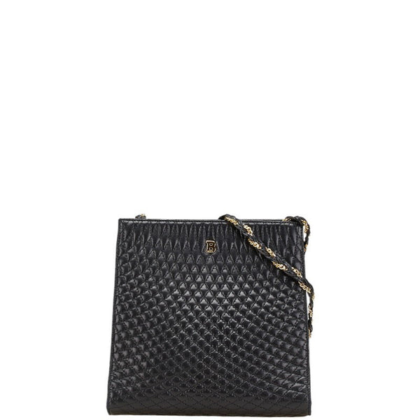BALLY Quilted B Logo Chain Shoulder Bag in Black Leather for Women