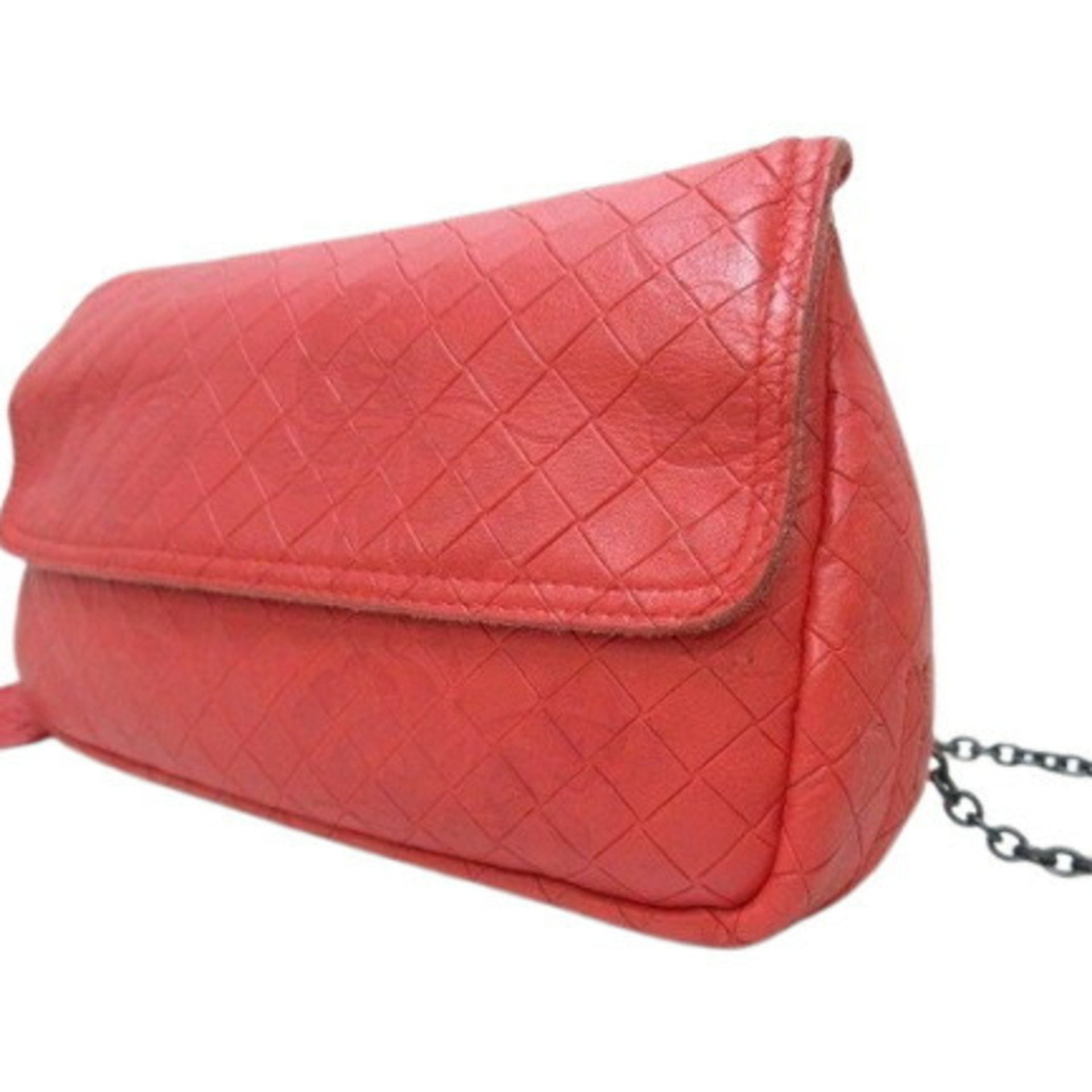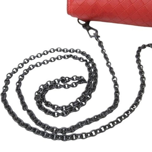 BOTTEGA VENETA Intrecciato Mirage Shoulder Bag - Red Leather with Chain and Gunmetal Hardware