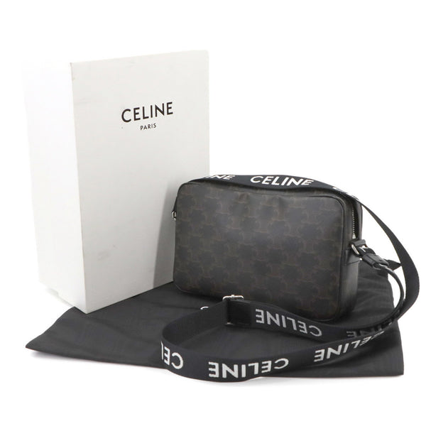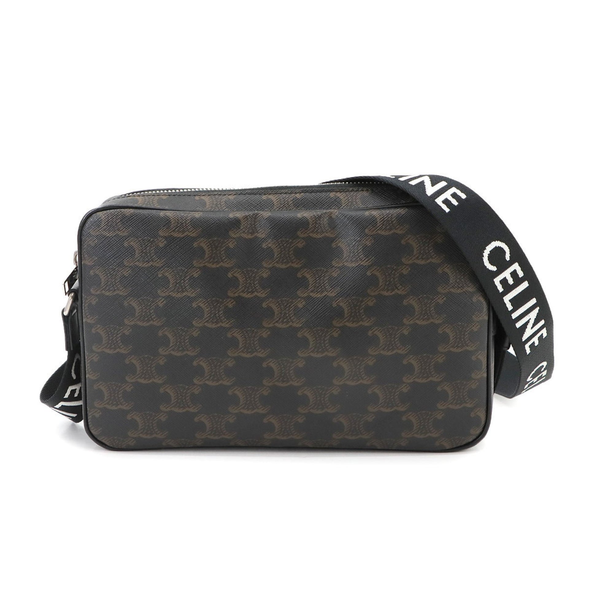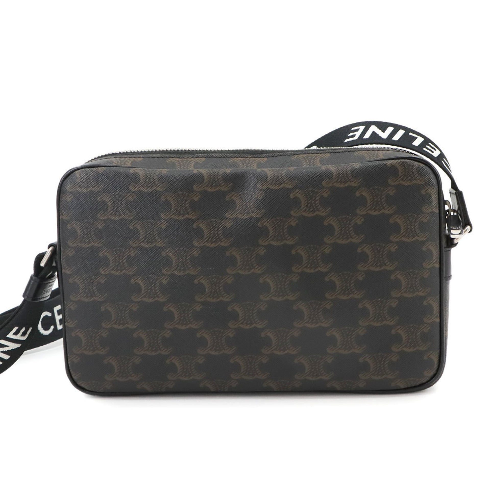 Celine Triomphe Medium Shoulder Bag in PVC and Leather, Black Brown, 197202DND