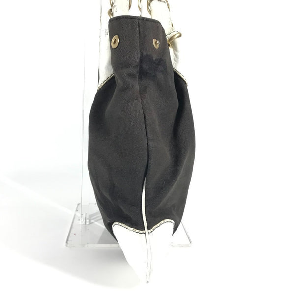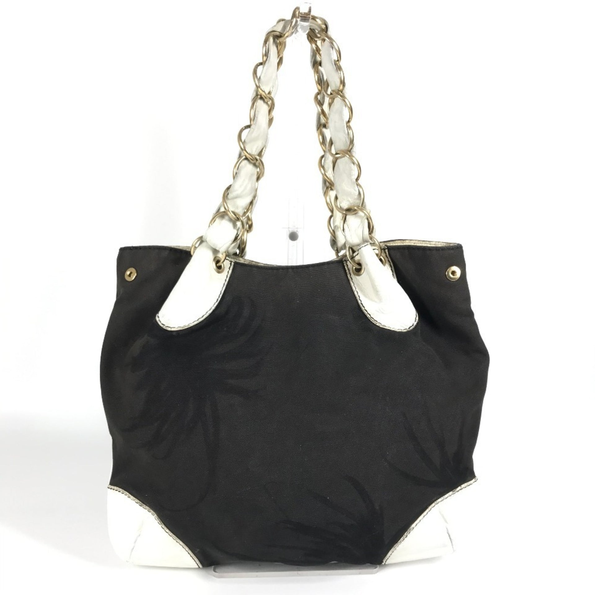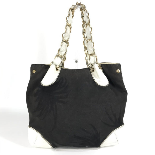 CHANEL CC Coco Mark Two-Tone Tote Bag with Double Chain, Shoulder Bag, Leather/Canvas, Black