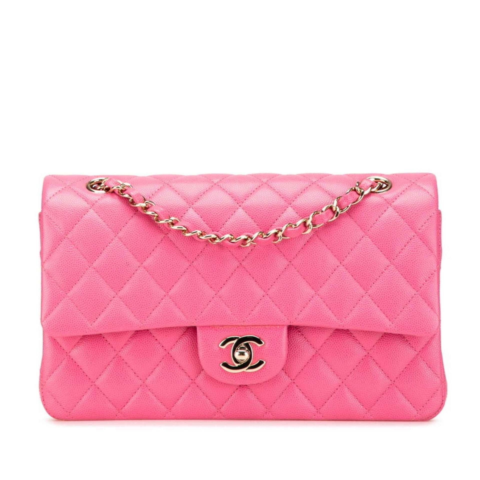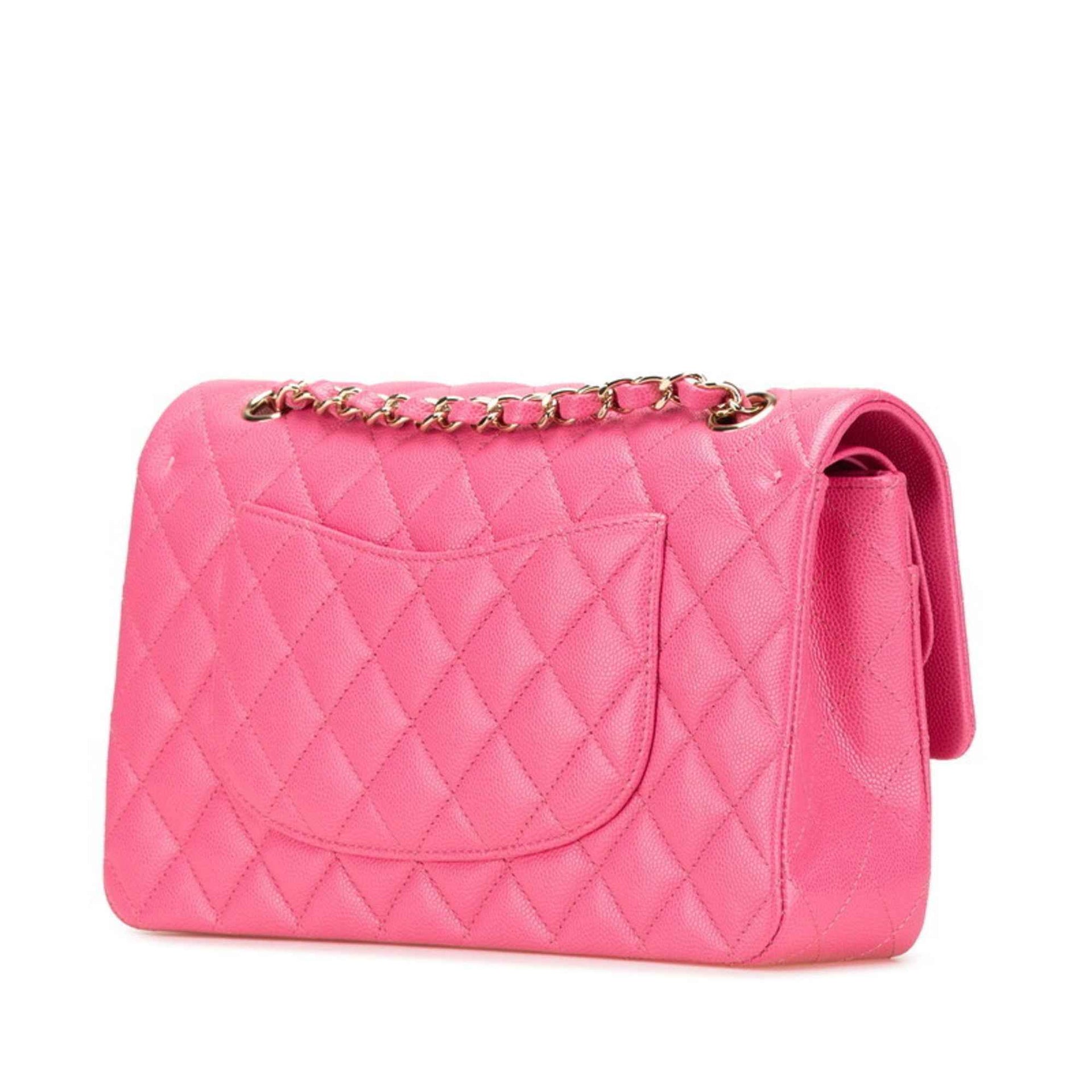 CHANEL Matelasse 25 Coco Mark Double Flap Chain Shoulder Bag Handbag Pink Caviar Skin Women\'s