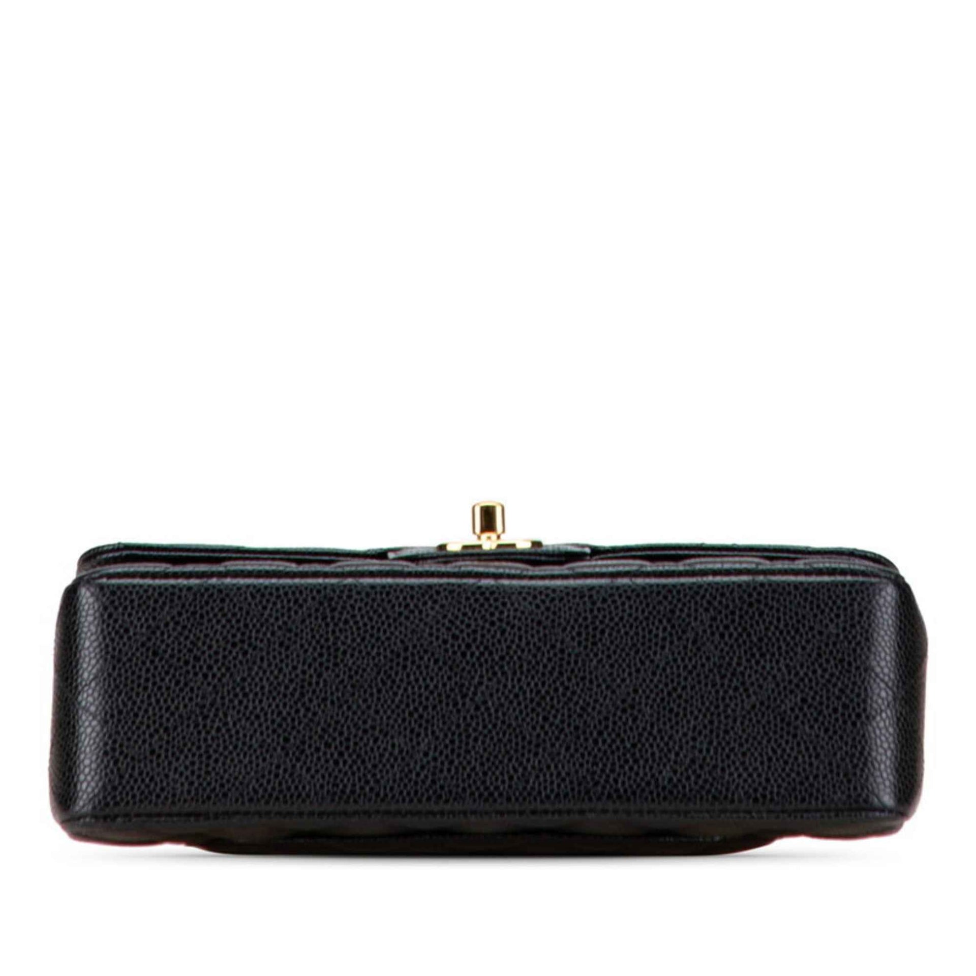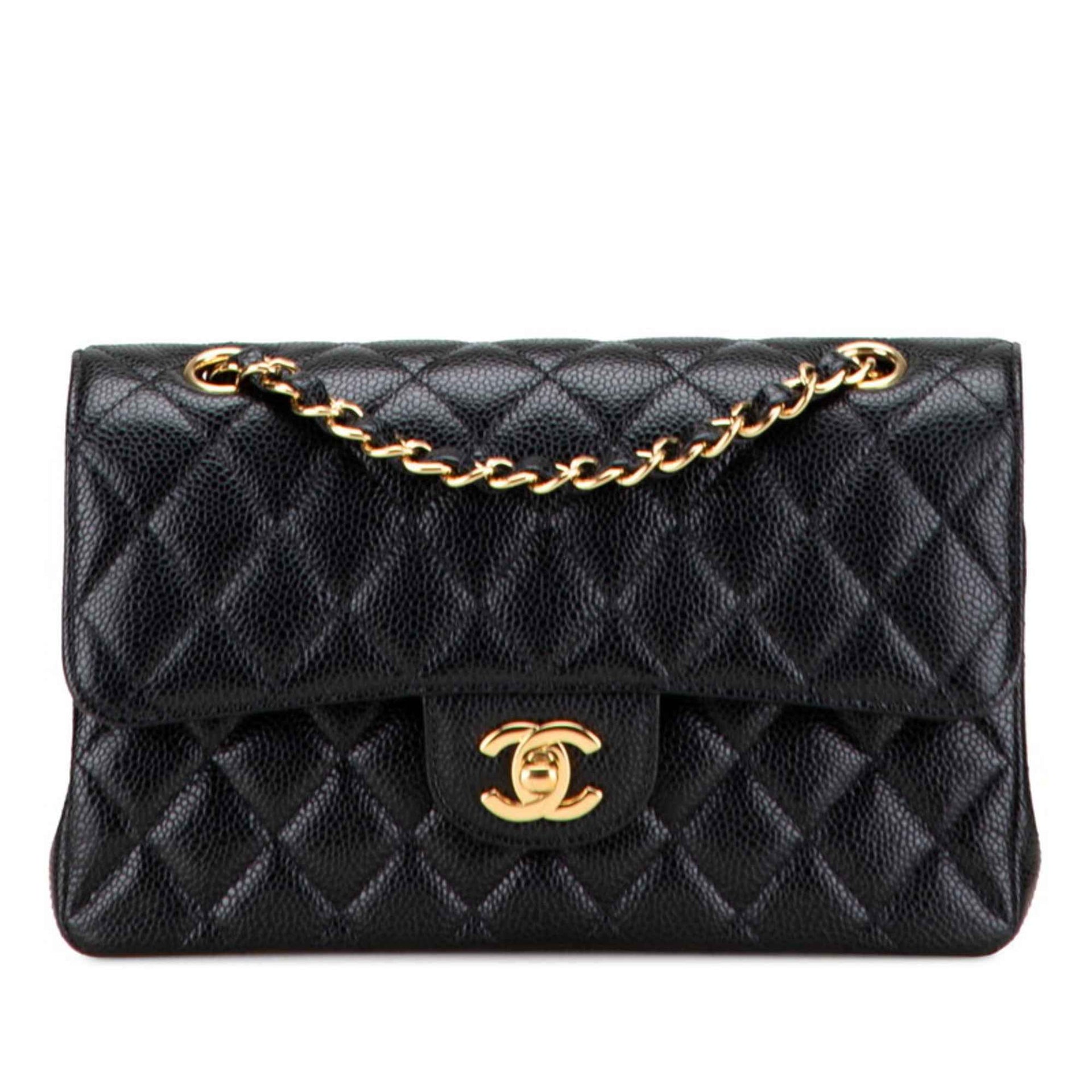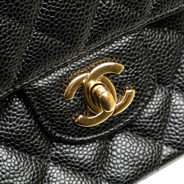 CHANEL Matelasse Coco Mark Double Flap Chain Shoulder Bag in Black with Gold Hardware and Caviar Leather, Women\'s