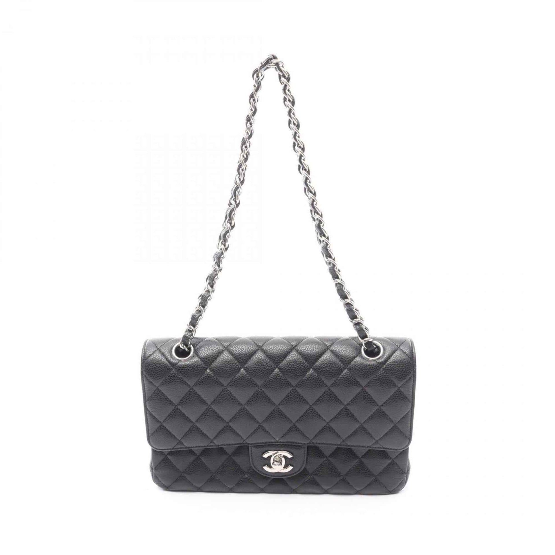 CHANEL Matelasse Double Flap Shoulder Bag in Grained Calfskin Leather, Black, Women\'s, A01112