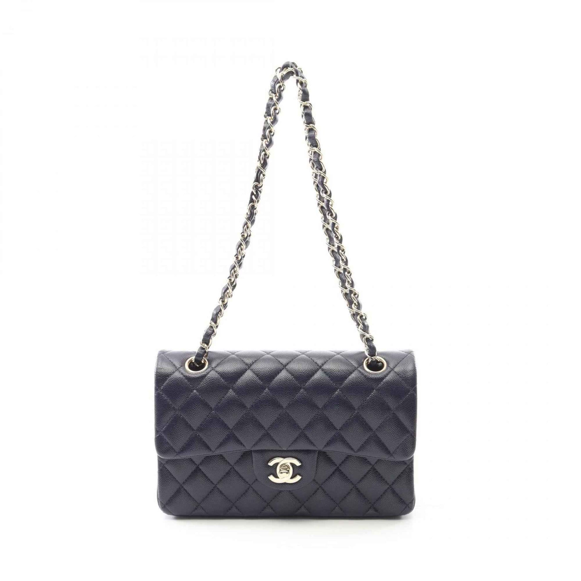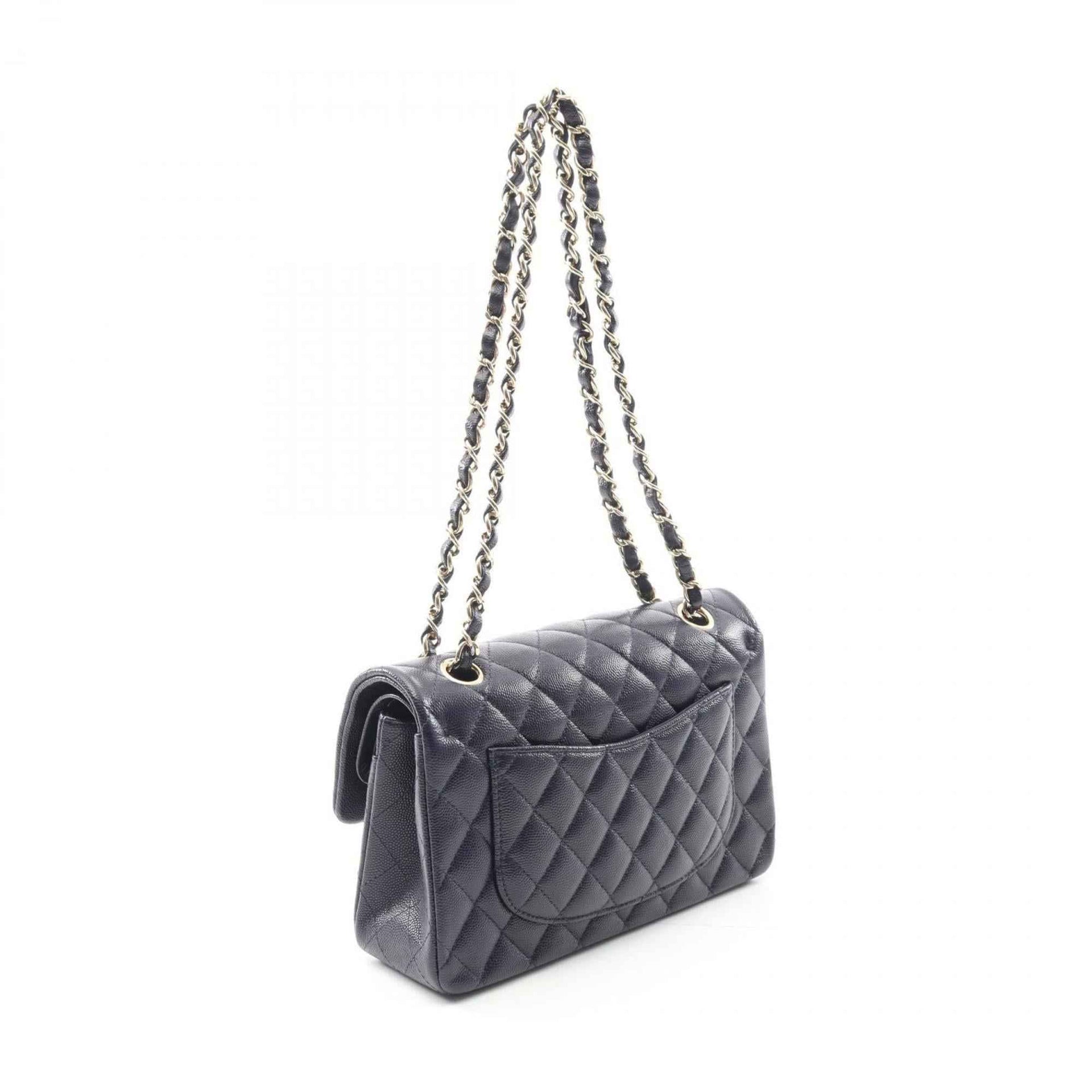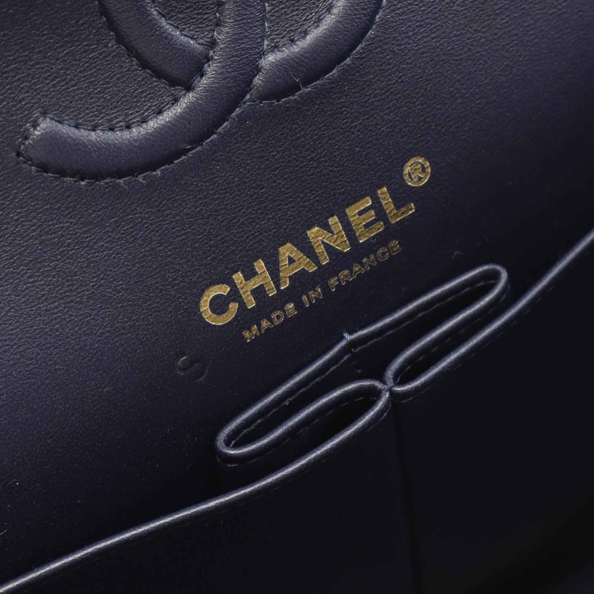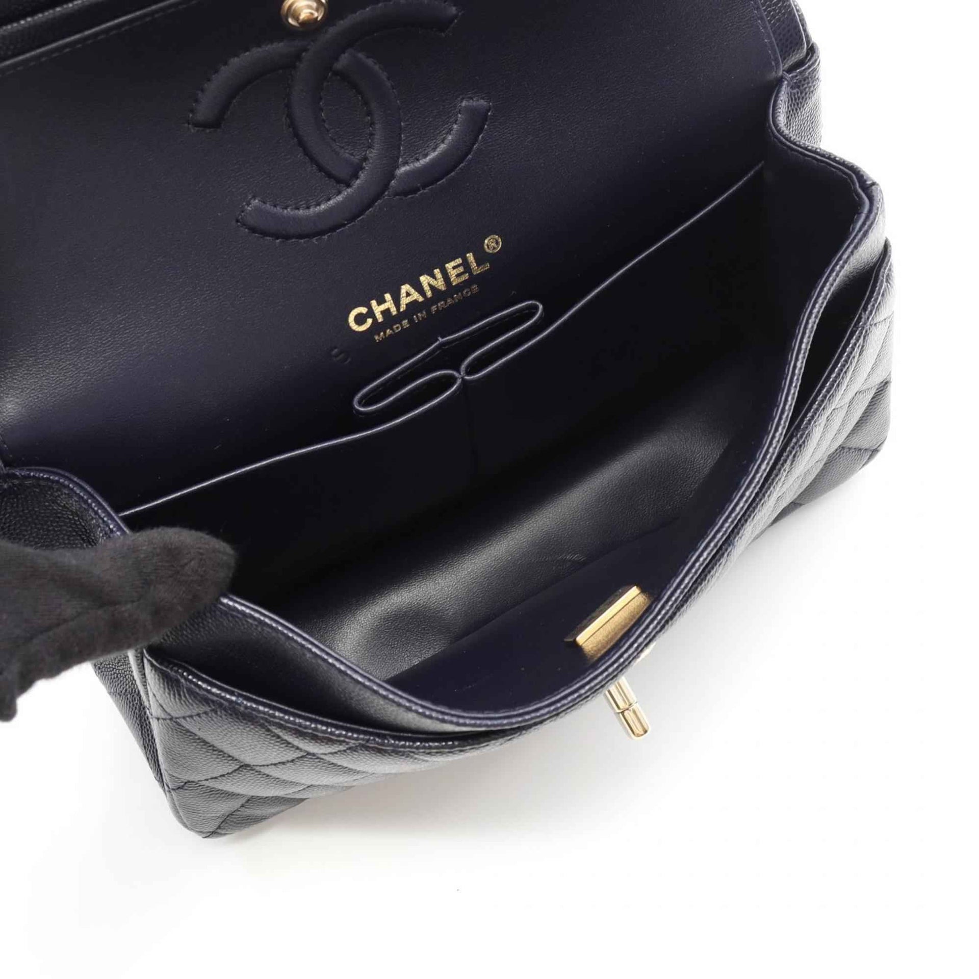 CHANEL Matelasse Double Flap Shoulder Bag in Grained Calfskin Leather, Navy Blue, A01113
