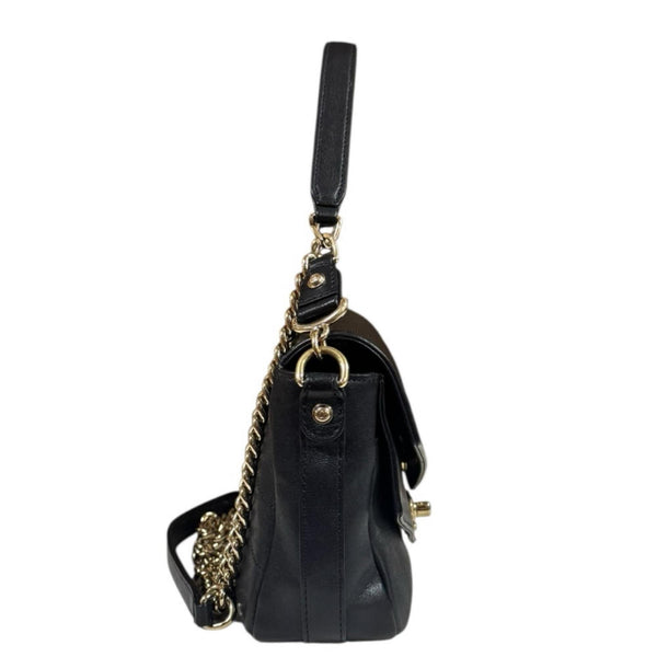 Chanel V-Stitch Shoulder Bag, Leather, A57470, Black, Women\'s, CHANEL Chain