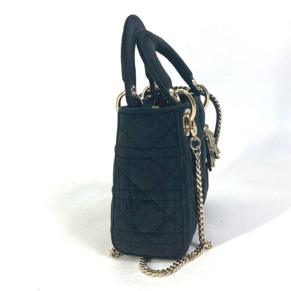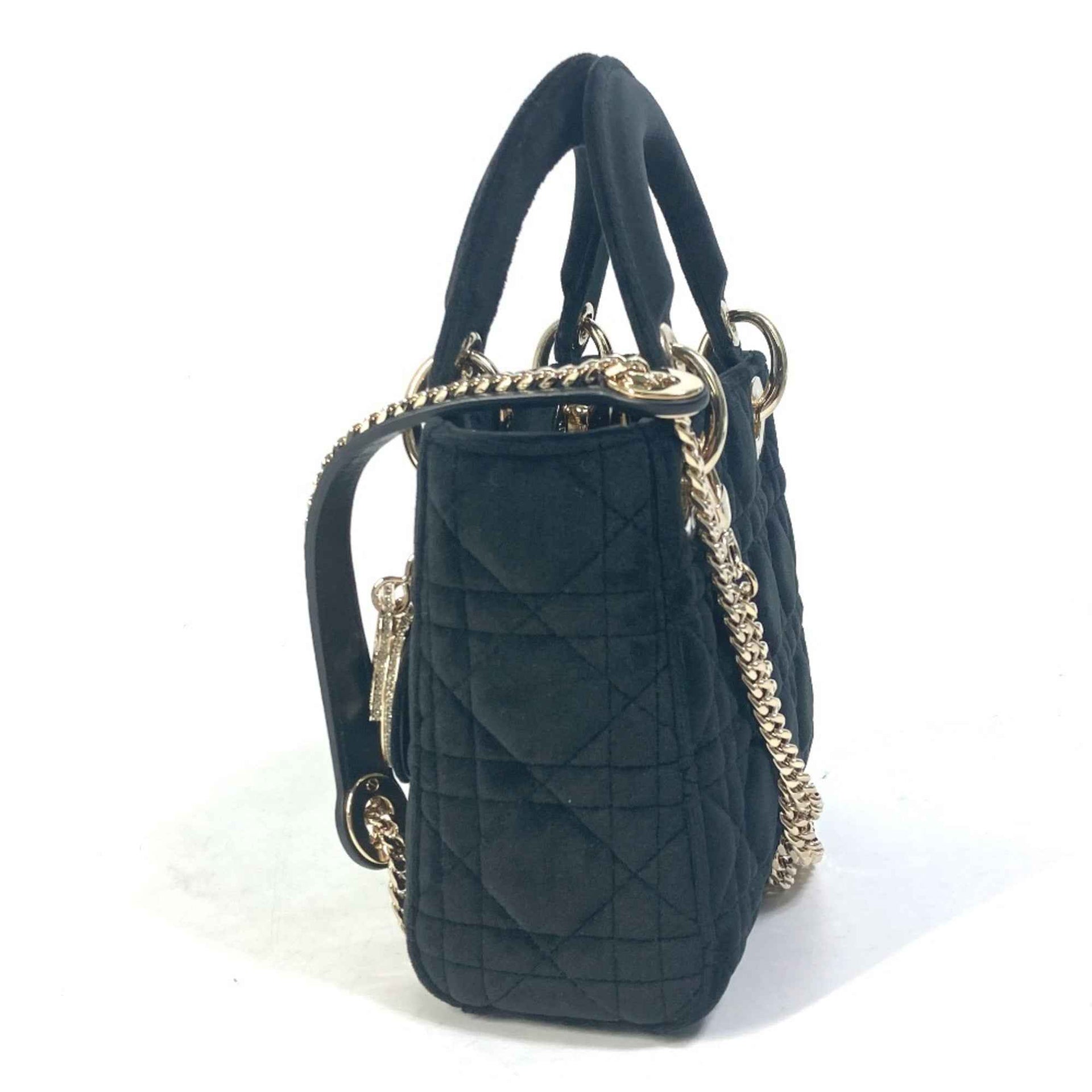 Christian Dior Dior Lady Chain Cannage Rhinestone Shoulder Bag Handbag Velour Leather Women\'s Black