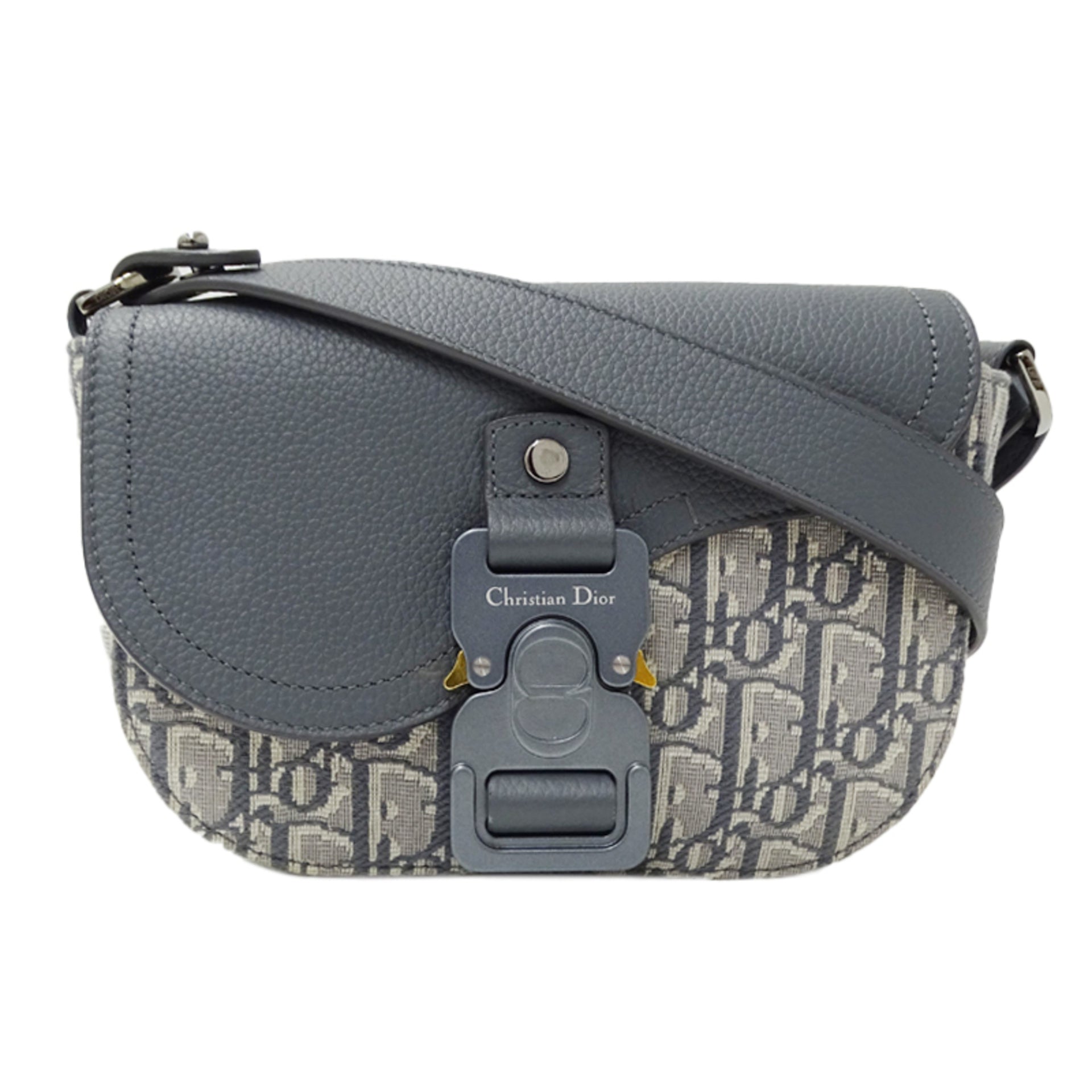 Christian Dior Dior Women\'s Oblique Shoulder Bag in Jacquard Calfskin Saddle Gray Trotter Leather Canvas
