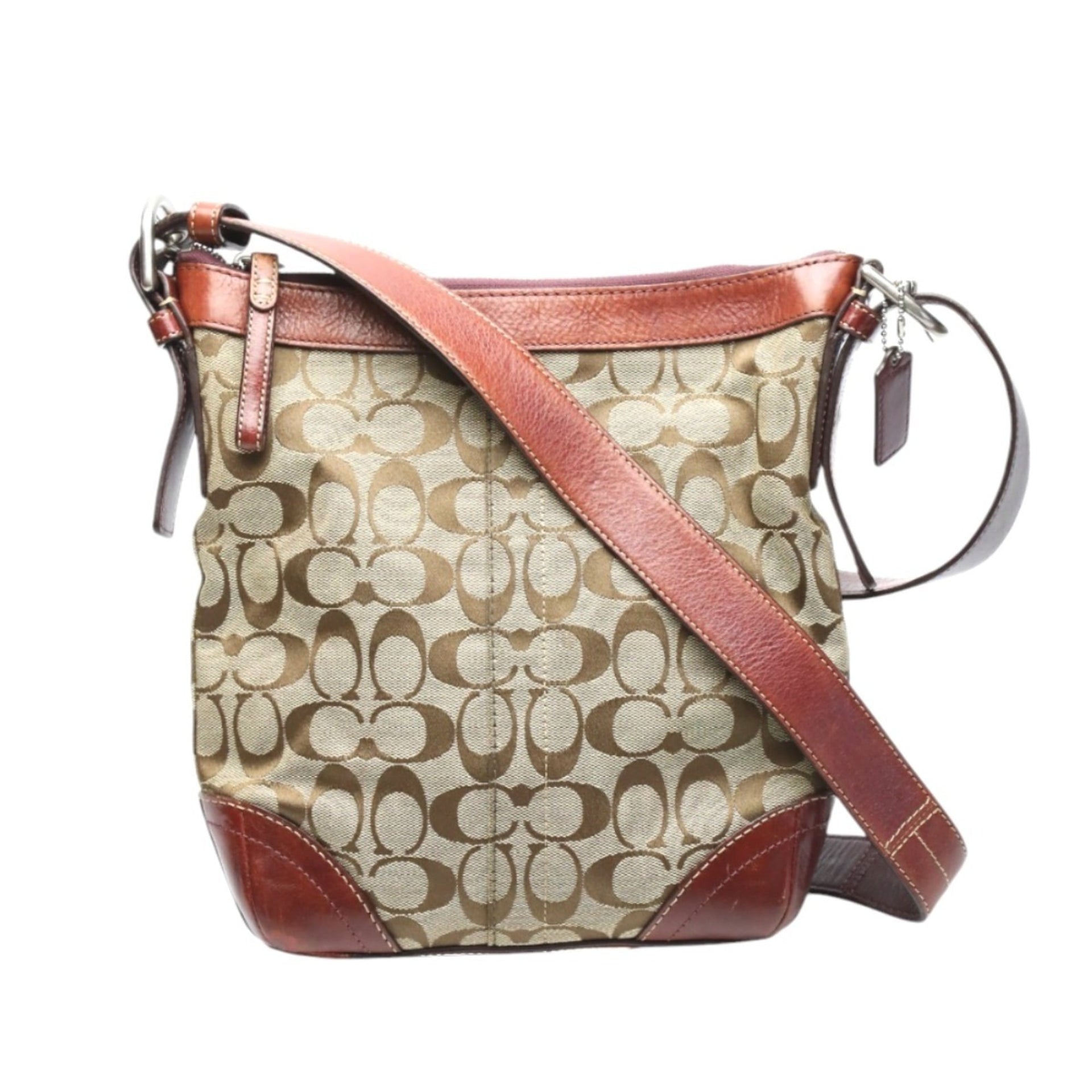 Coach CC Canvas Signature Leather Shoulder Bag, Brown, F12327