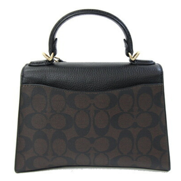 Coach Signature Pepper Satchel C7226, dark brown and black PVC leather shoulder bag for women.