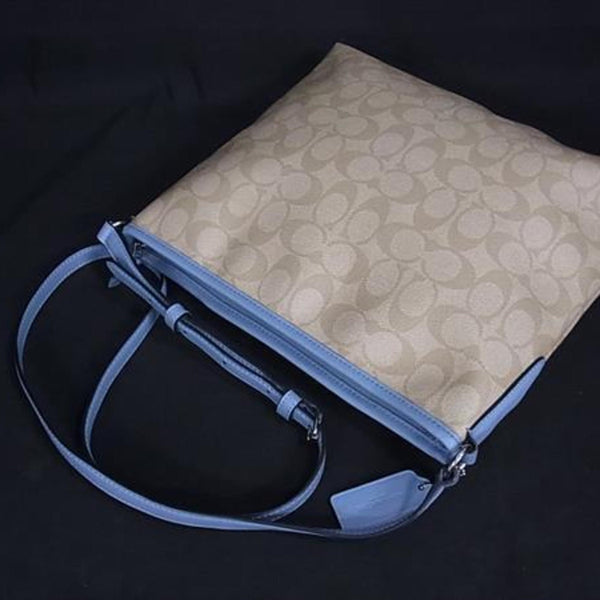 COACH Signature Shoulder Bag F58297 Beige and Light Blue Leather for Men Women