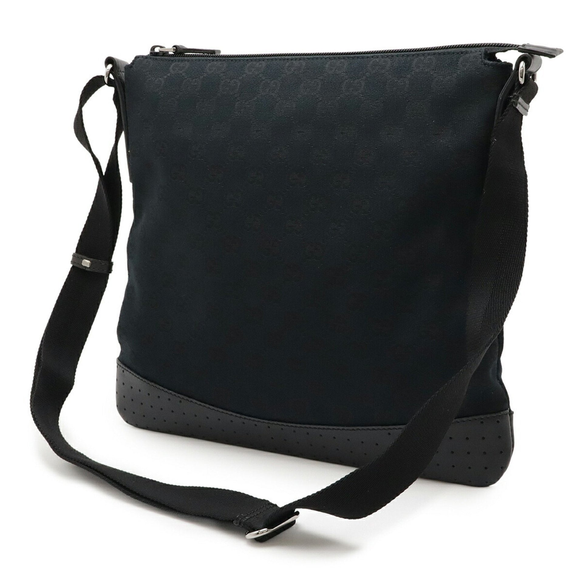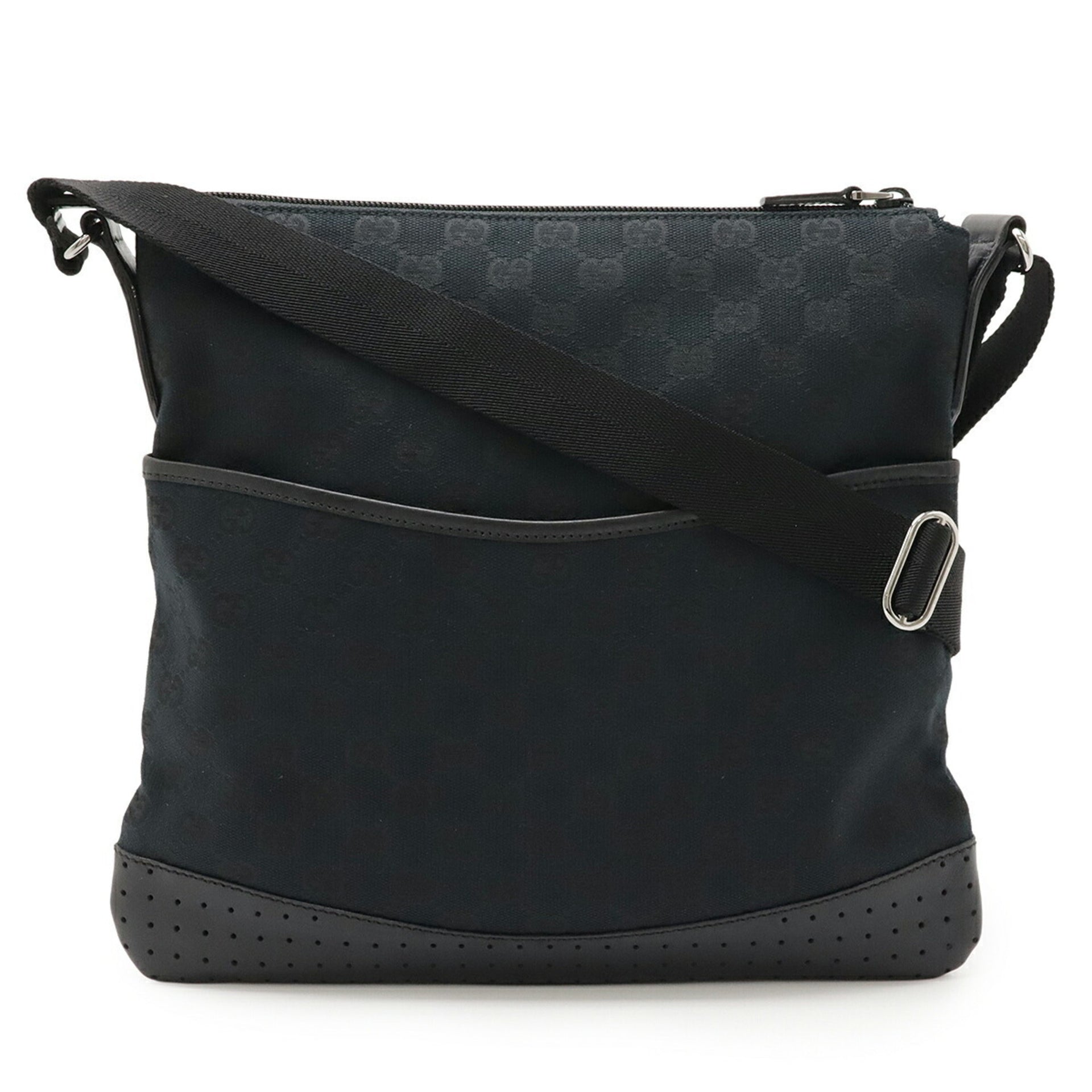 GUCCI GG canvas shoulder bag with perforated leather in black (145857)