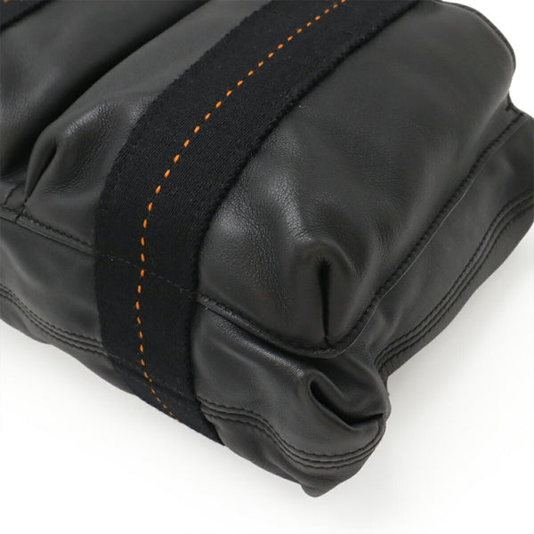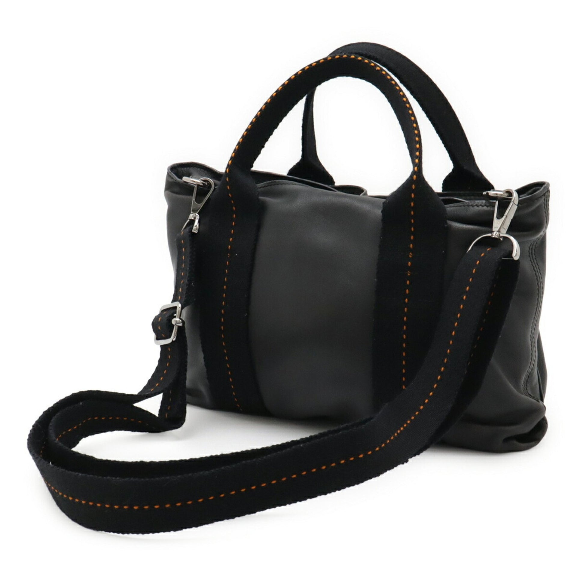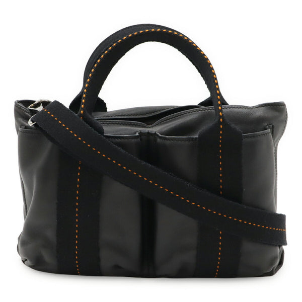 HERMES Caravan Horizontal PM Tote Bag/Shoulder Bag in Veau Derma Leather, Black and Orange