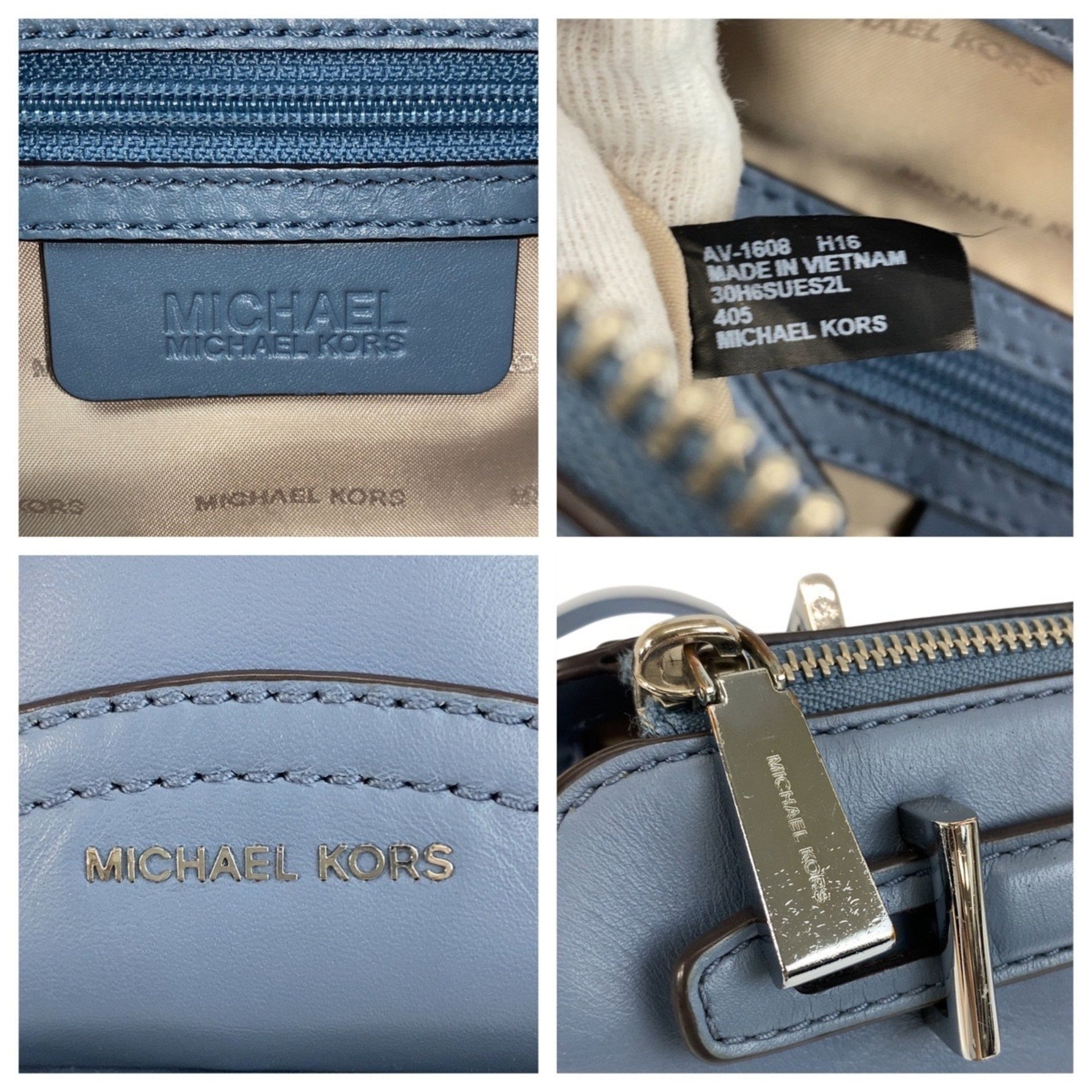 Michael Kors 30H6SUES2L Blue Leather Shoulder Bag with Silver Hardware, Women\'s