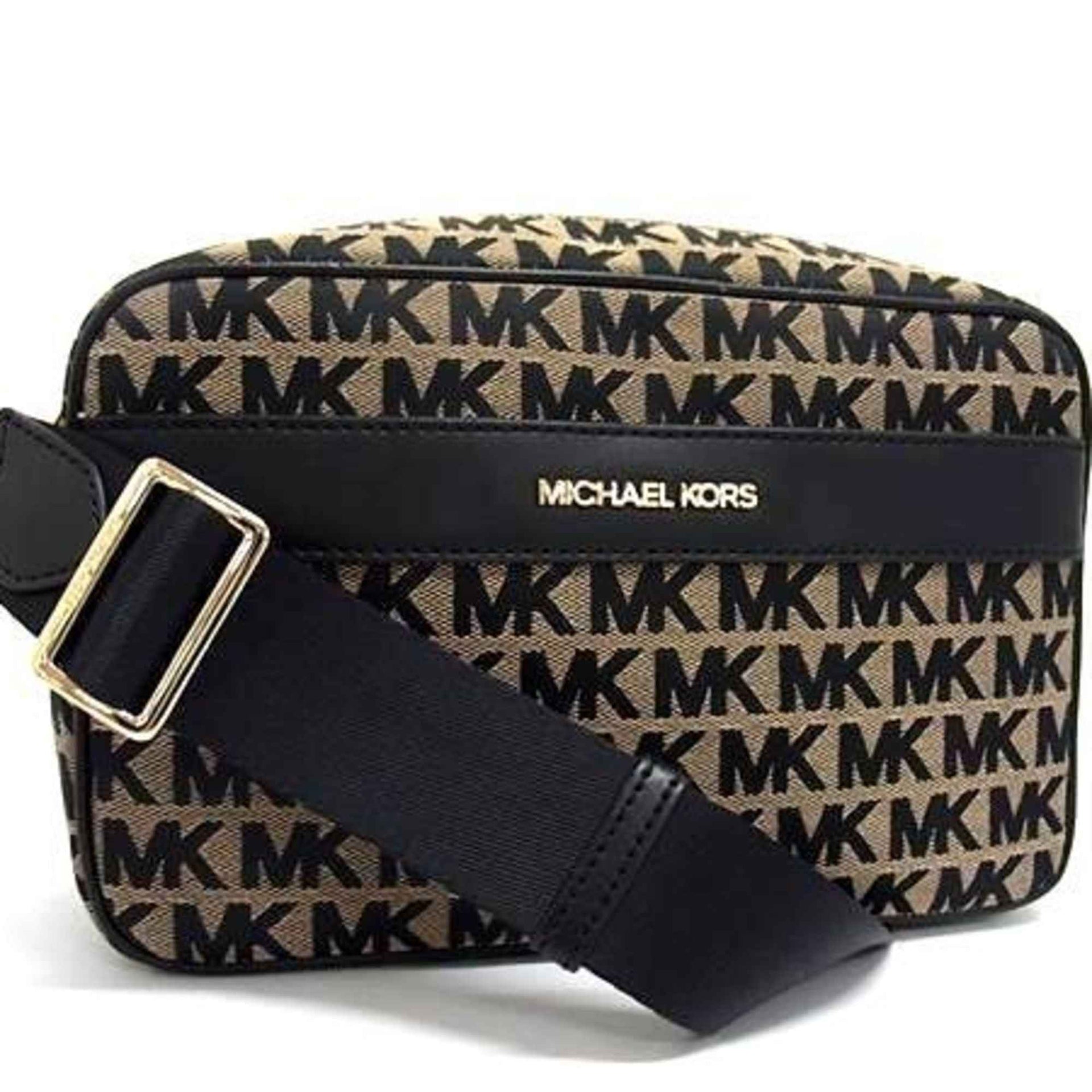 MICHAEL KORS Michael Kors Shoulder Bag MK Pattern Black Beige Canvas Leather Men\'s Women\'s