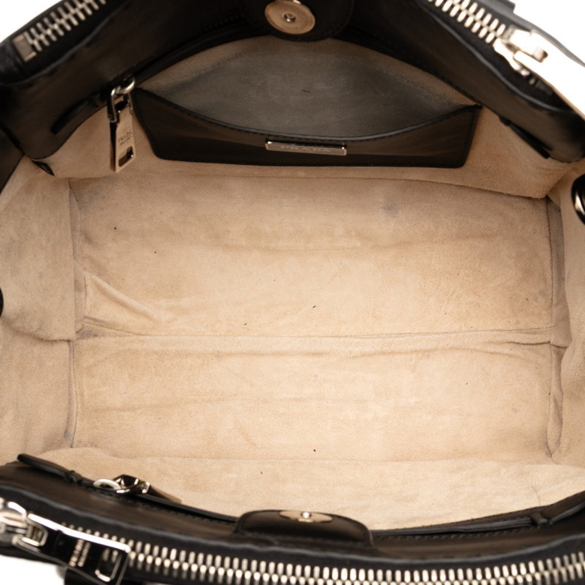Prada Triangle Logo Plate Handbag/Shoulder Bag, 2-Way, B2861K, Black Leather, Women\'s, PRADA