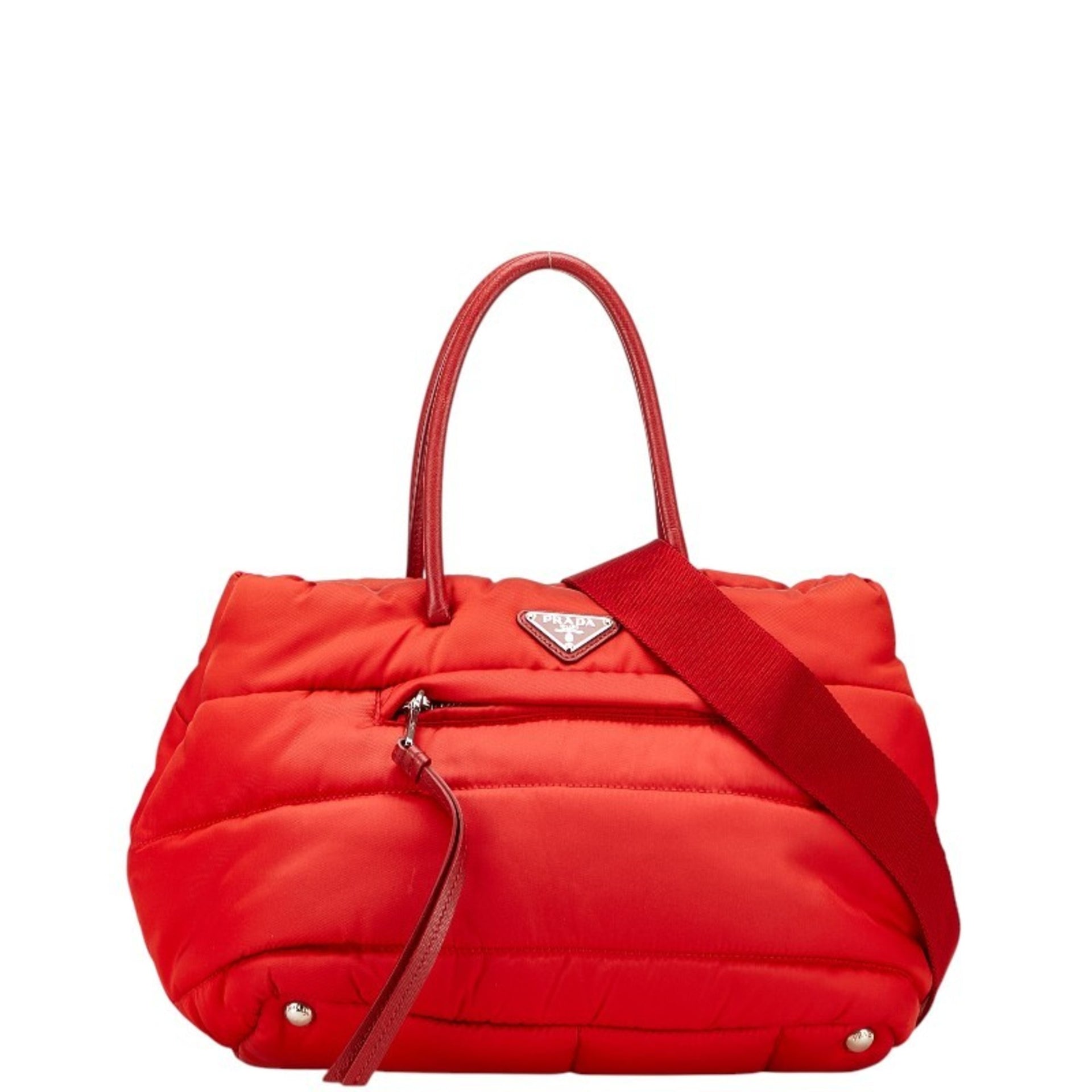 Prada Triangle Logo Plate Handbag/Shoulder Bag 2WAY BN2771 Red Nylon Leather Women\'s PRADA