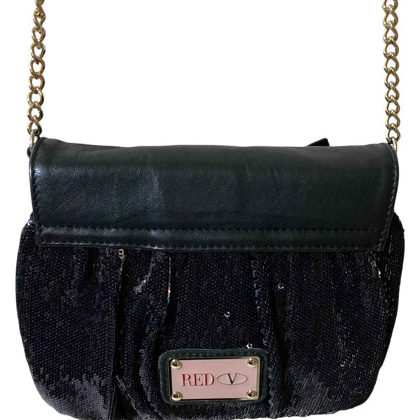 REDValentino RED VALENTINO Ribbon Sequin Shoulder Bag, Party Black, Women\'s