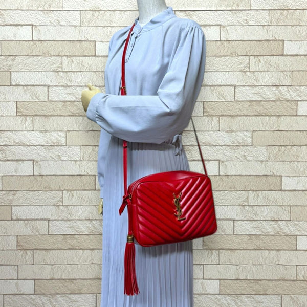 Saint Laurent Lou Camera Bag Shoulder Bag, Leather, 612544, Red, Women\'s, SAINT LAURENT