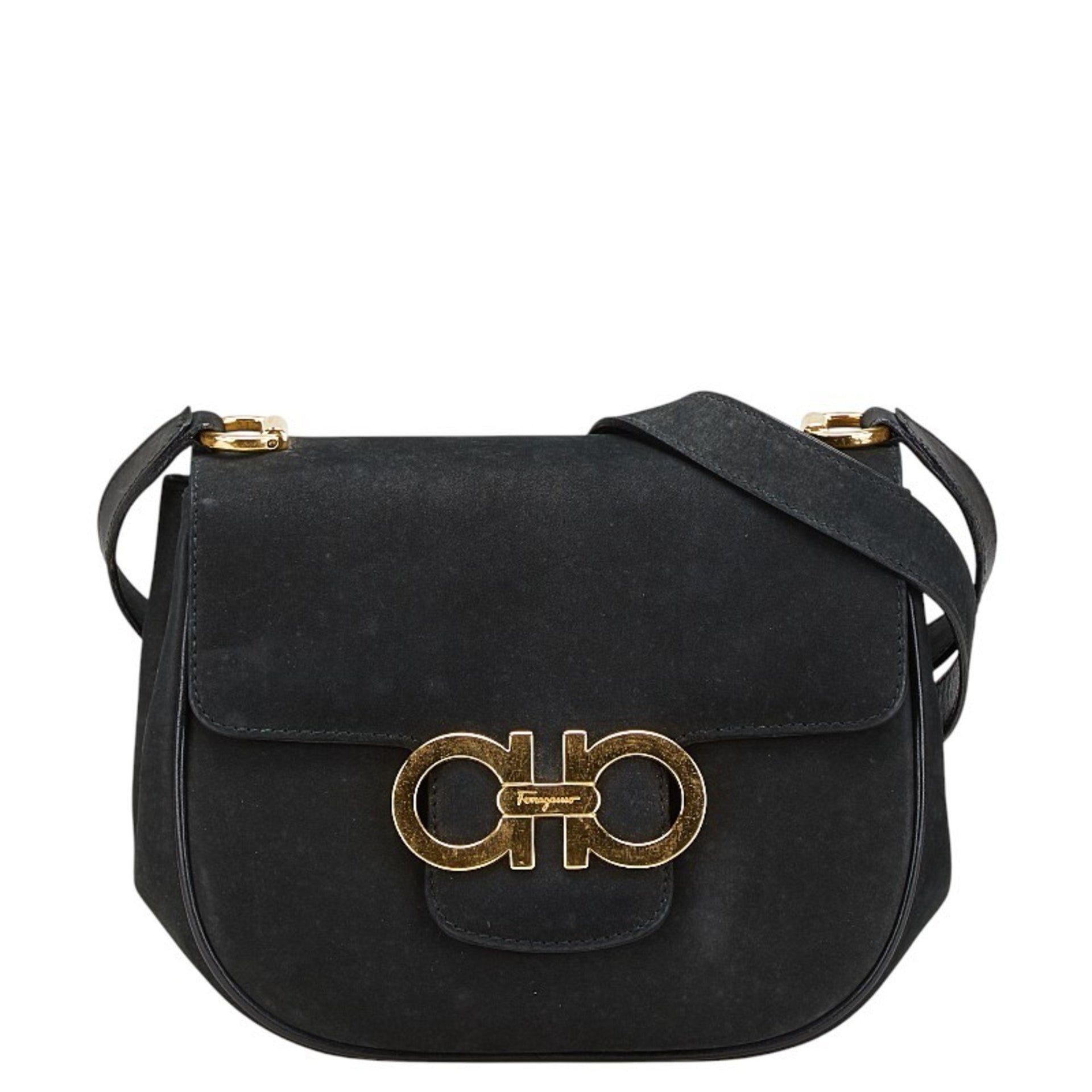 Salvatore Ferragamo Gancini Crossbody Shoulder Bag in Black Suede for Women