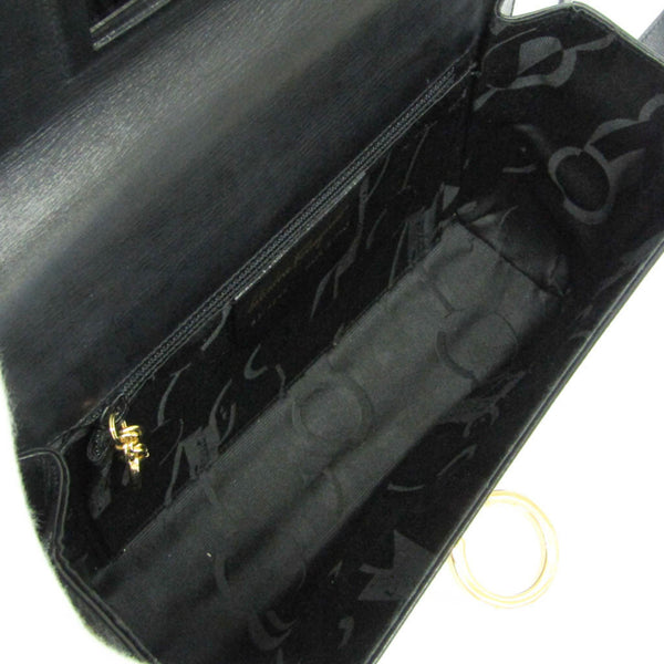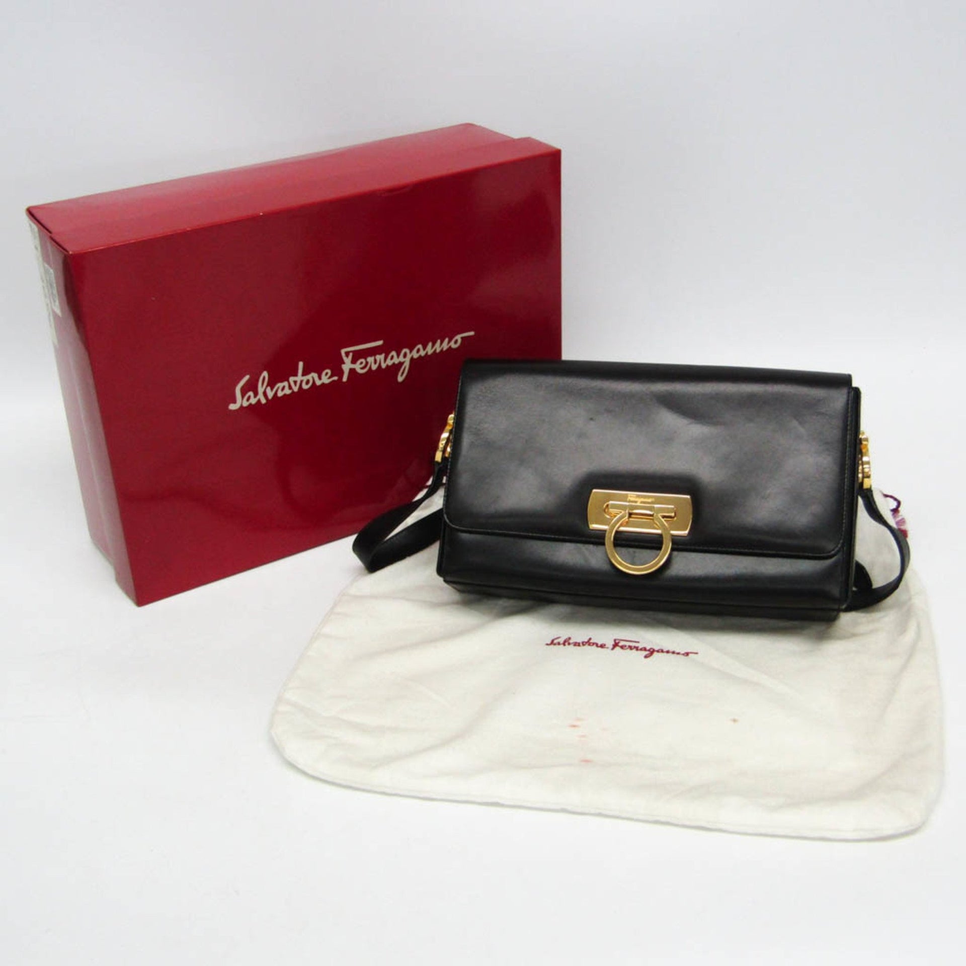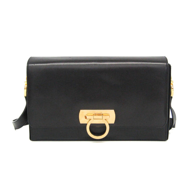 Salvatore Ferragamo Gancini E21 4696 Women\'s Leather Shoulder Bag Black