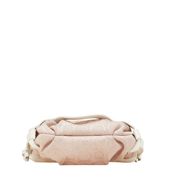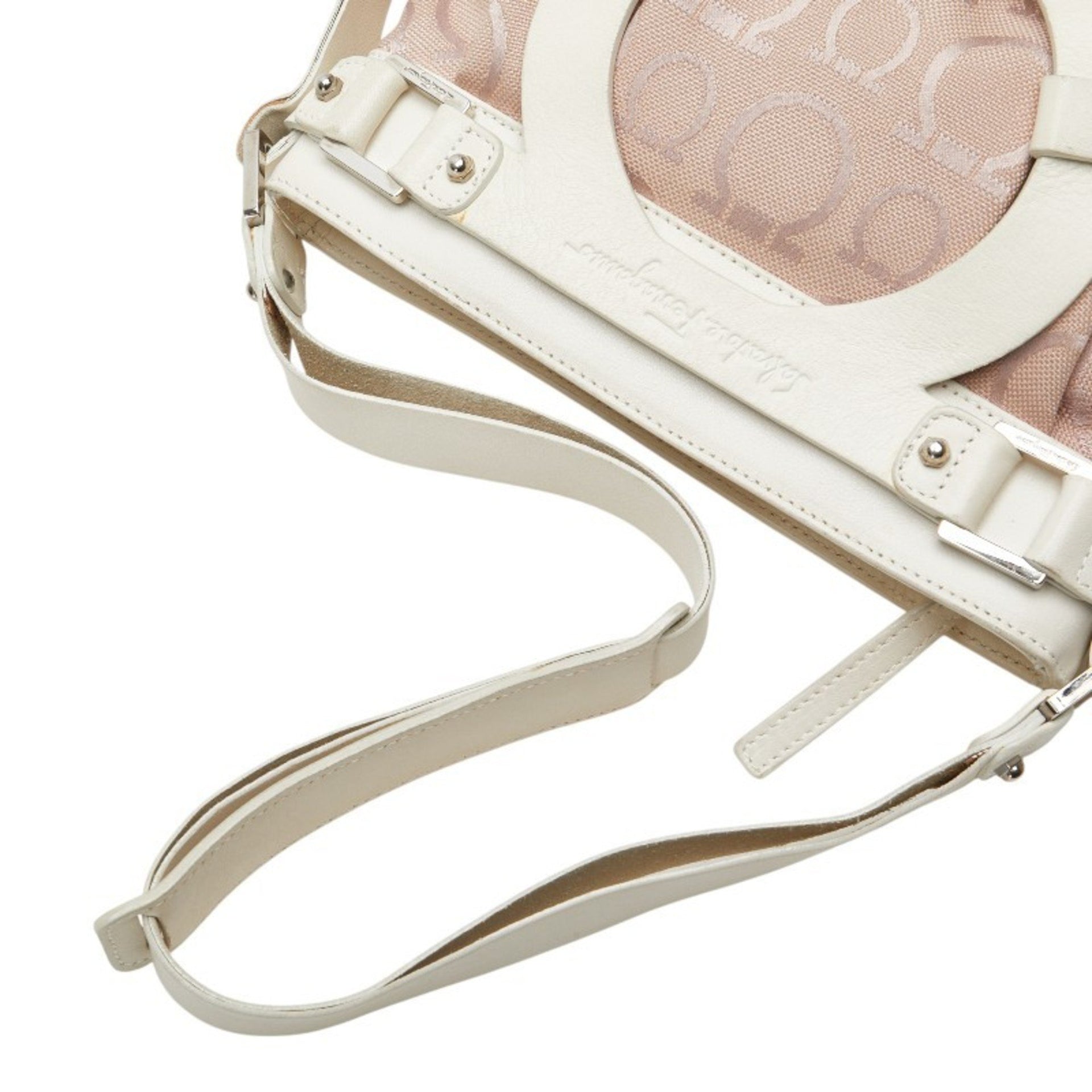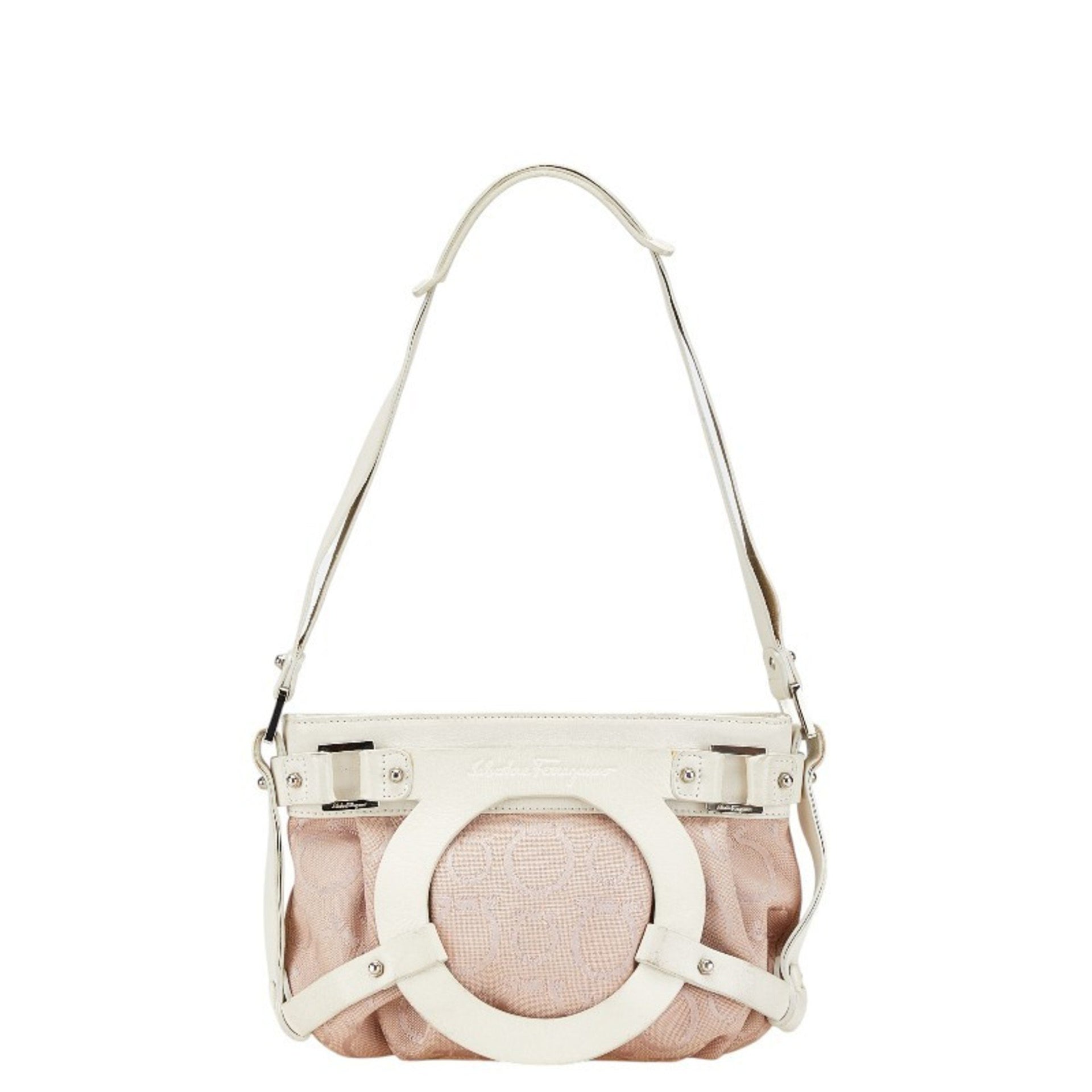 Salvatore Ferragamo Gancini One-Shoulder Bag AU-21 5866 Pink and White Canvas Leather Women\'s