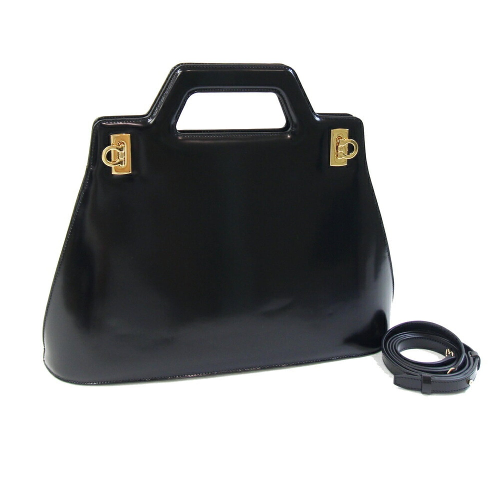 Salvatore Ferragamo Gancini Wanda 21 3961 Black Leather Shoulder Bag for Women