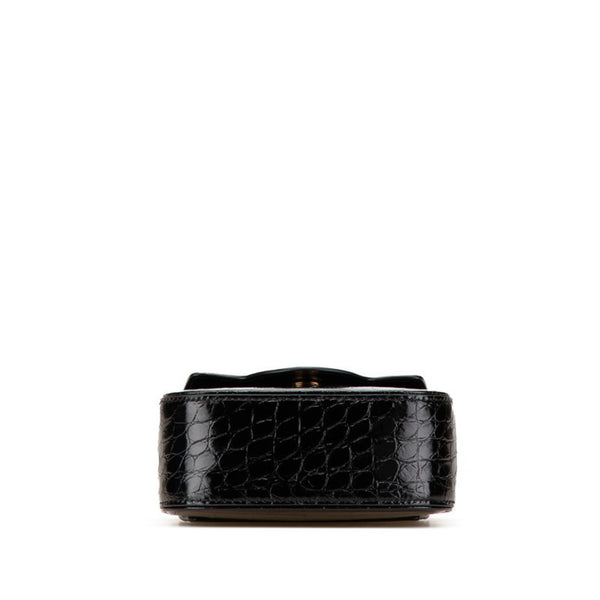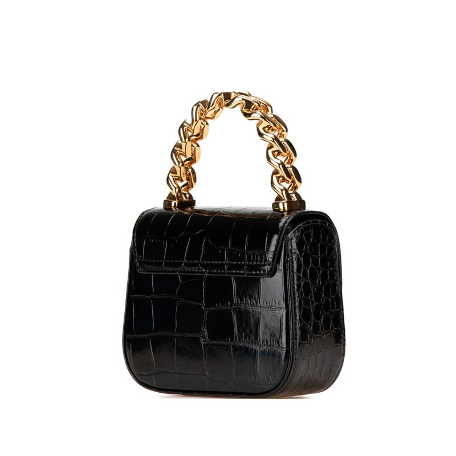 Versace Medusa Crocodile Embossed Handbag/Shoulder Bag, 2-Way, Black and Gold Plated Leather, Women\'s