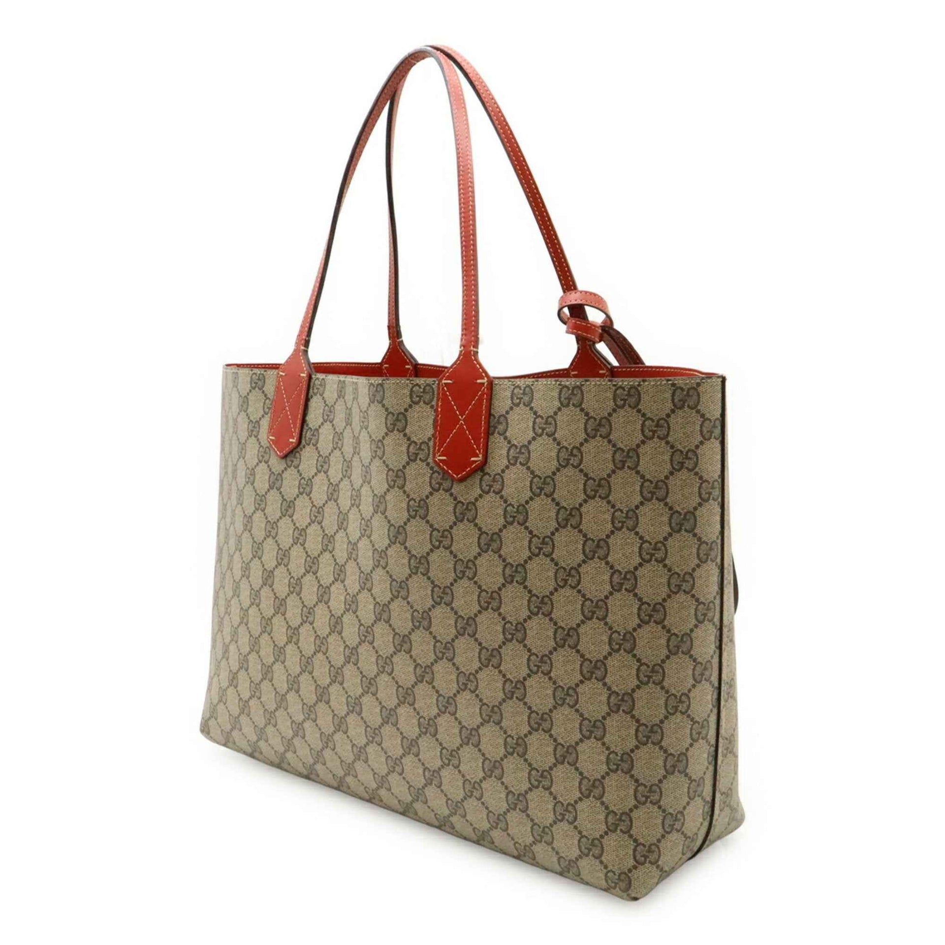 GUCCI GG Supreme Reversible Tote Bag Shoulder PVC Leather Beige Red 368568