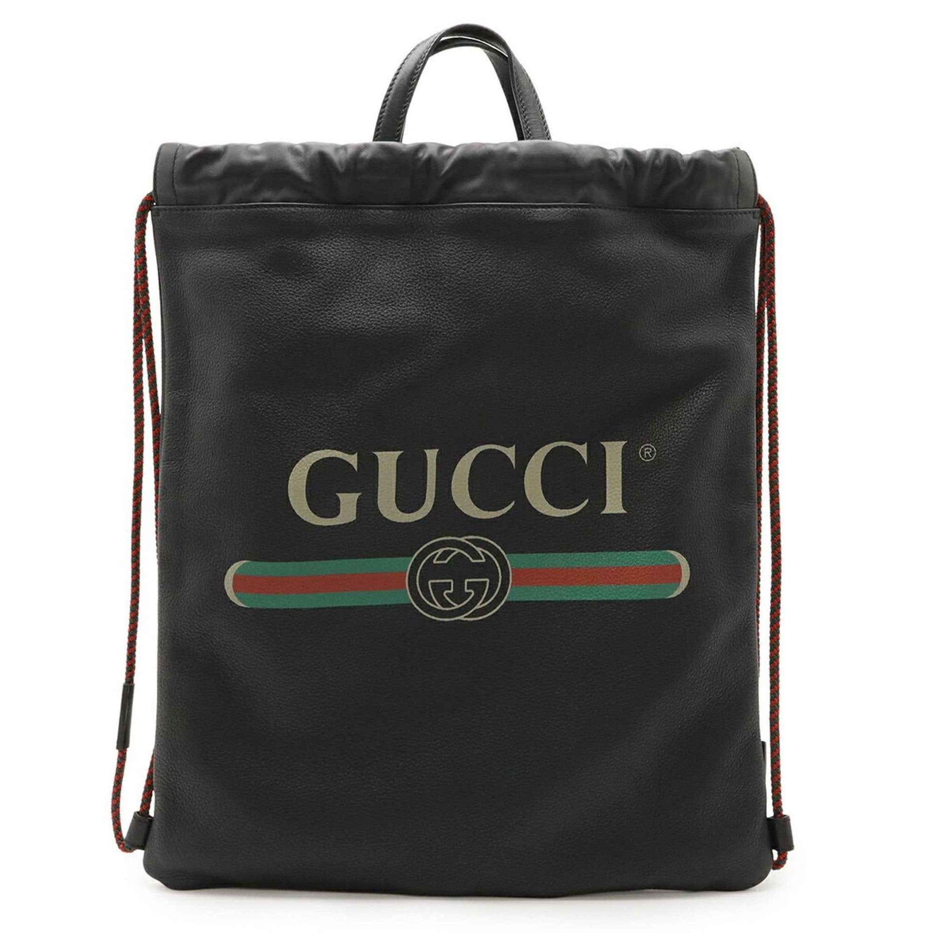 GUCCI Gucci Print Coco Capitan Drawstring Backpack/Tote Bag in Black Leather (Product Code: 494053)