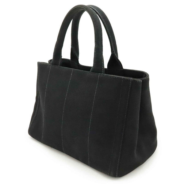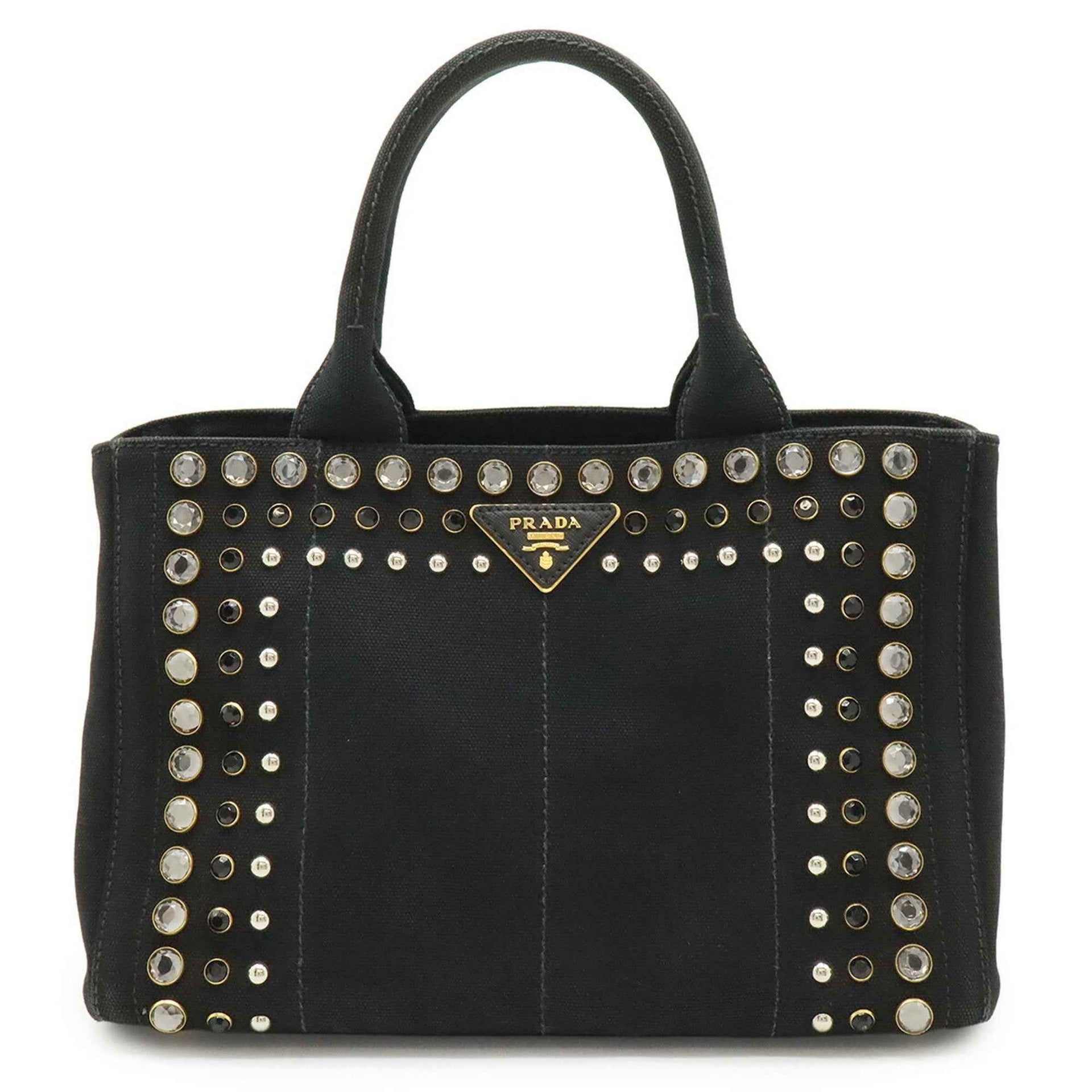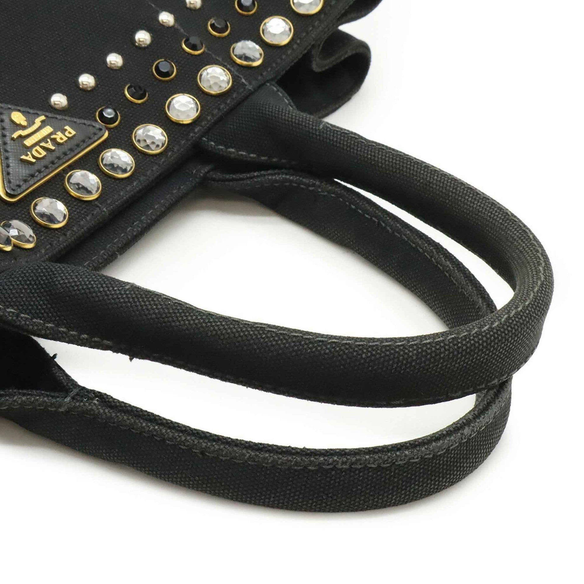 PRADA CANAPA Tote Bag, Beaded Studs, Canvas, Nero, Black, Shoulder 1BG439