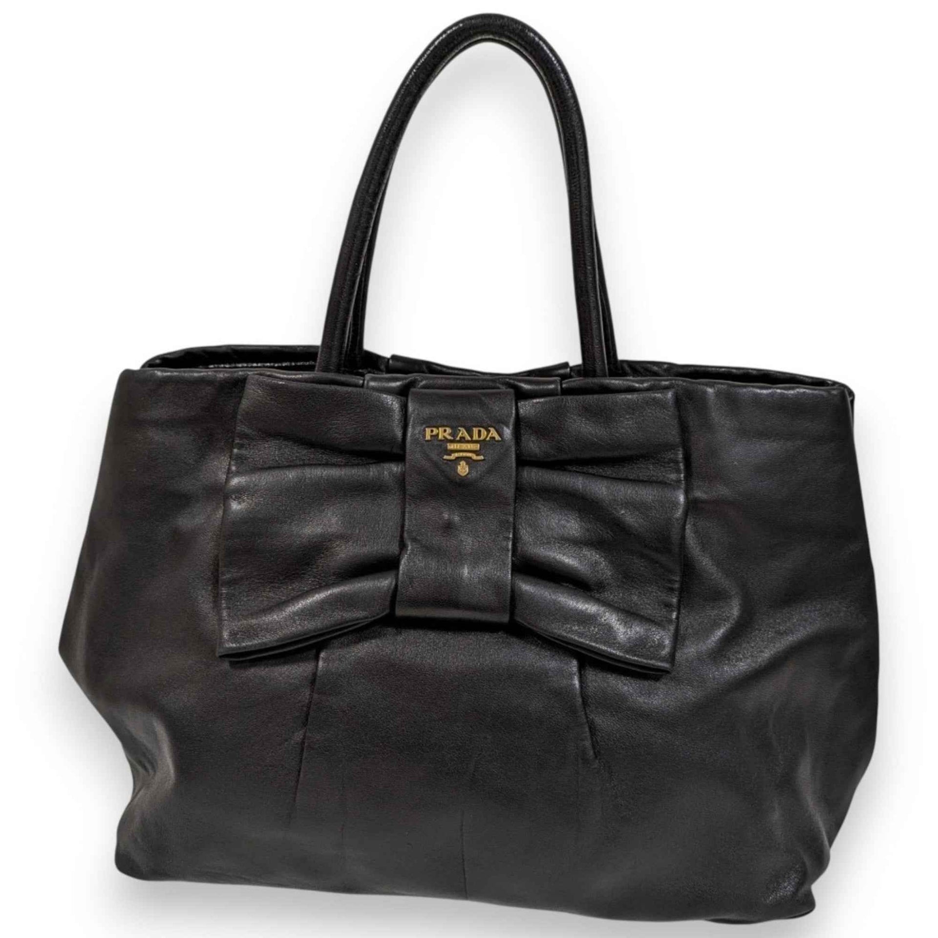 PRADA Fiocco Bow Ribbon Leather Tote Bag in Black for Women
