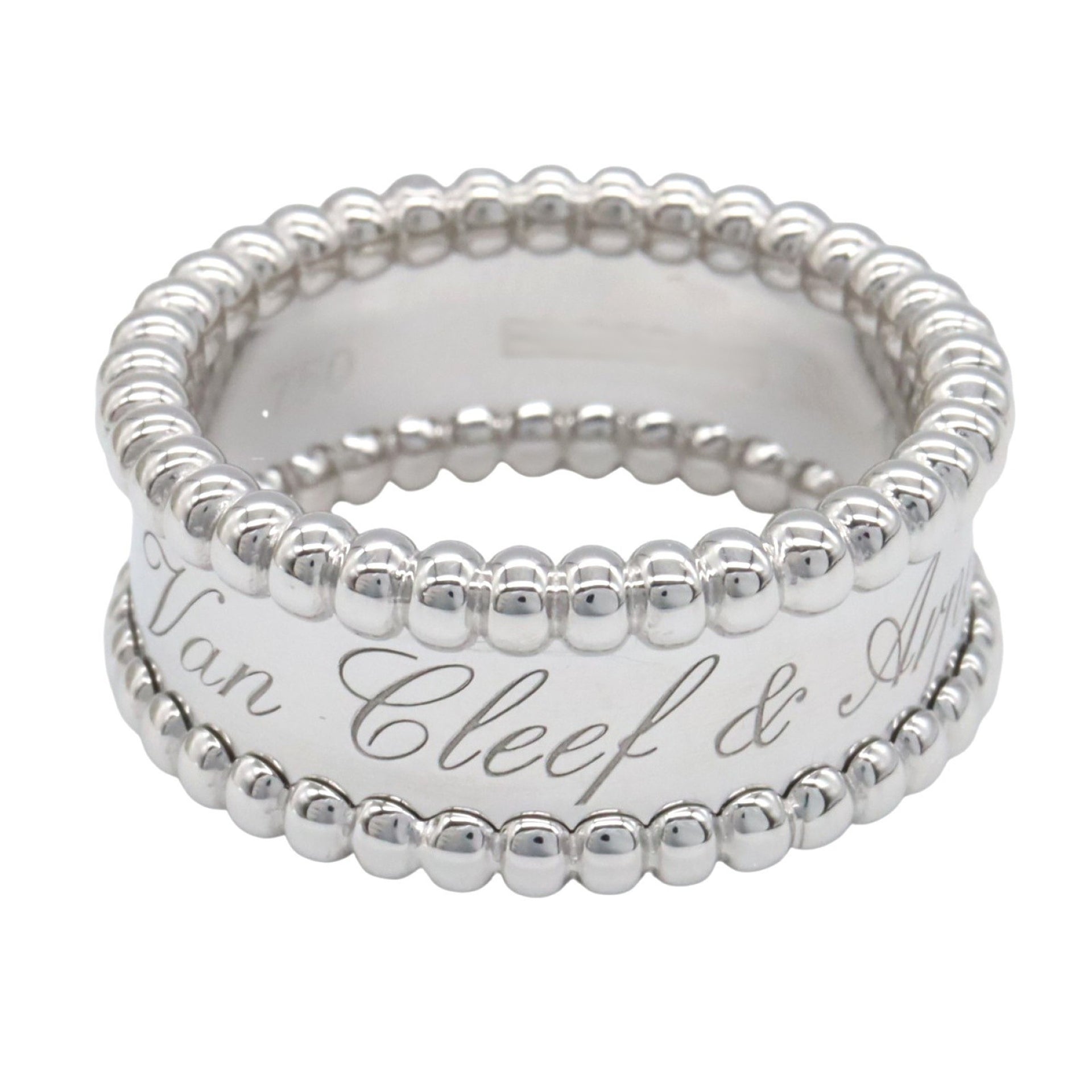 Van Cleef & Arpels Perlée Senior Tulle Ring, 18K White Gold, Men\'s and Women\'s, Silver