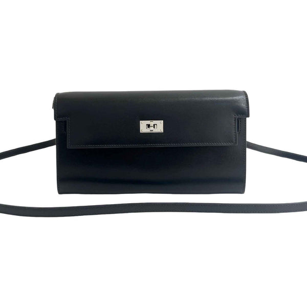 B-stamped HERMES Kelly Long To-Go Box Calf Leather Wallet/Shoulder Wallet, Black, 05769