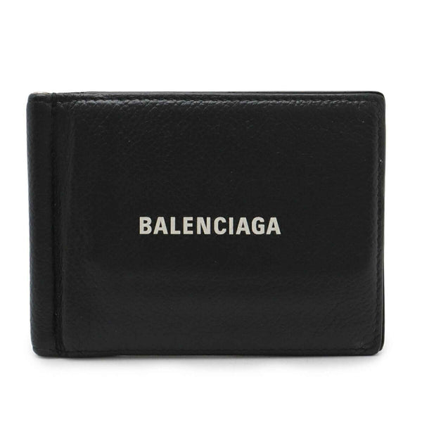 BALENCIAGA Cash Bill Clip Square Wallet, Bifold Billfold with Money Clip, Leather, Black, 625829