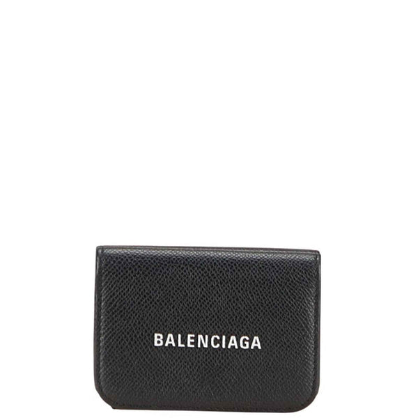Balenciaga Logo Compact Trifold Wallet 593813 Black Leather Women\'s BALENCIAGA