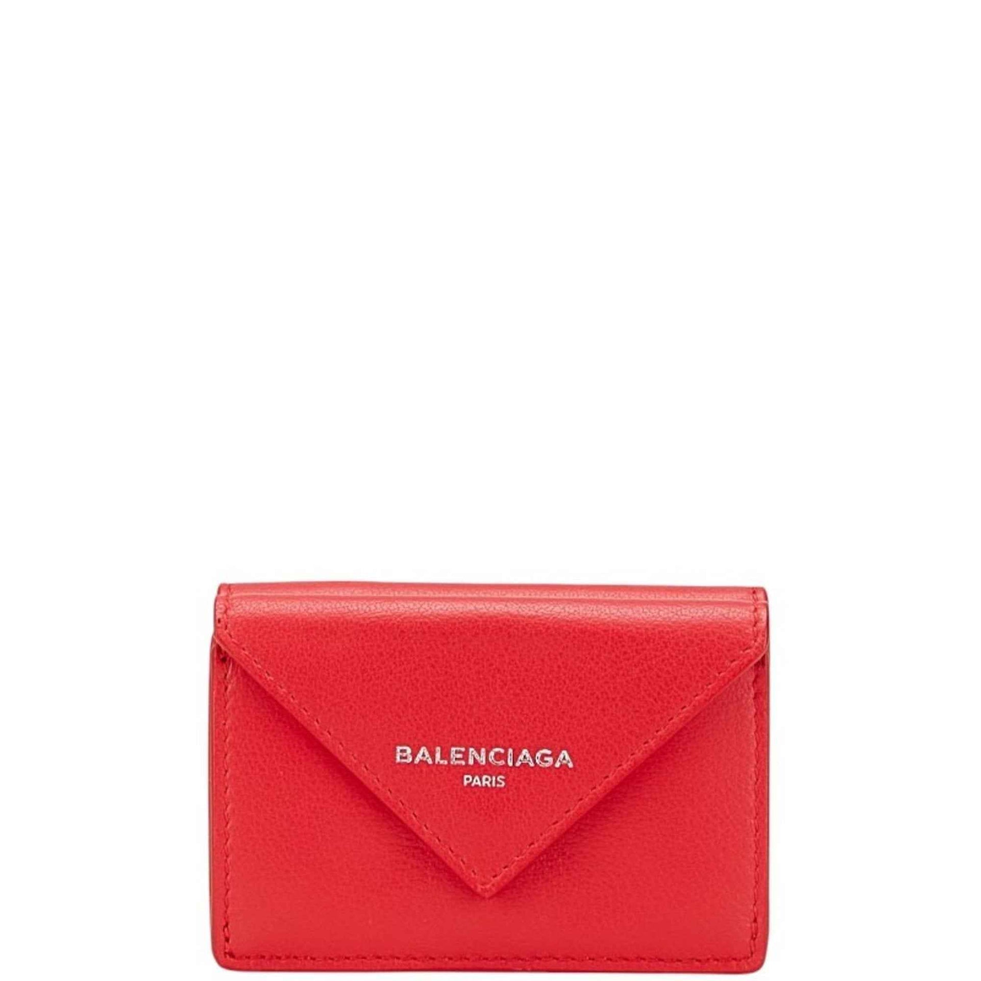 Balenciaga Paper Mini Trifold Wallet 391446 Red Leather Women\'s BALENCIAGA