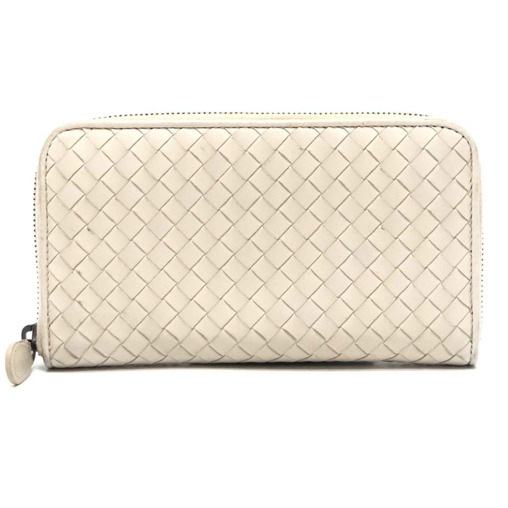 BOTTEGA VENETA 114076 Intrecciato Long Wallet with Round Zipper, Leather, Women\'s, White