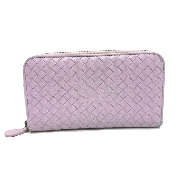 BOTTEGA VENETA 114076 Intrecciato Wallet, Round Zipper Leather, Women\'s, Purple