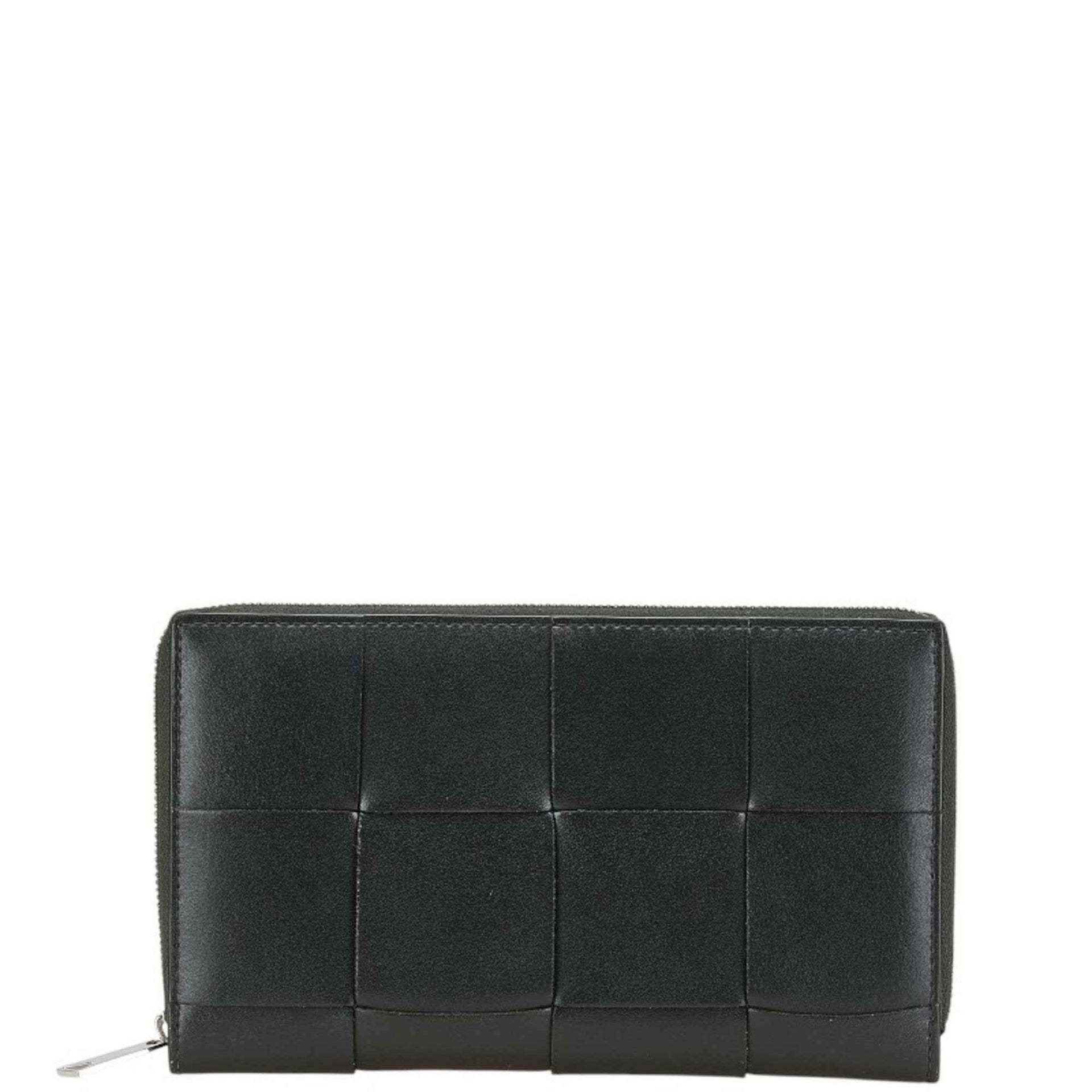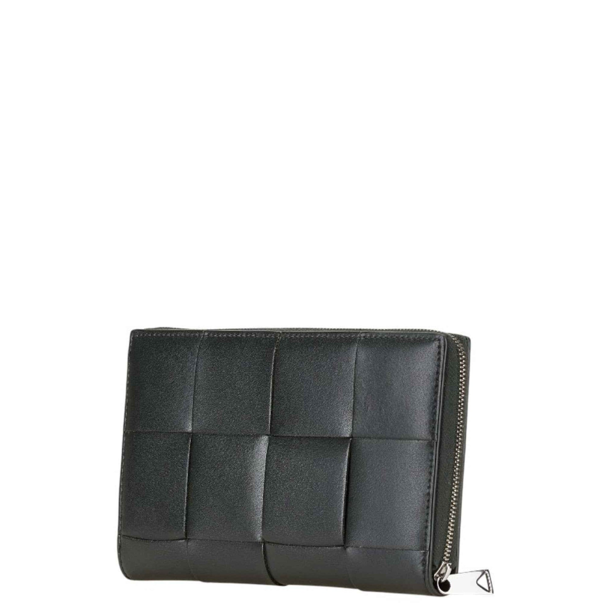 Bottega Veneta Cassette Intrecciato Zip-Around Wallet, Black and Orange Leather, Women\'s
