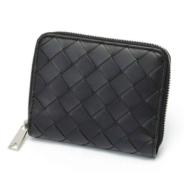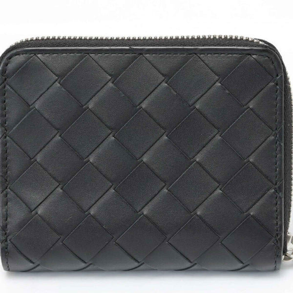 Bottega Veneta Compact Zip Around Bifold Wallet 749426 in Black Intrecciato Leather (K-159159)